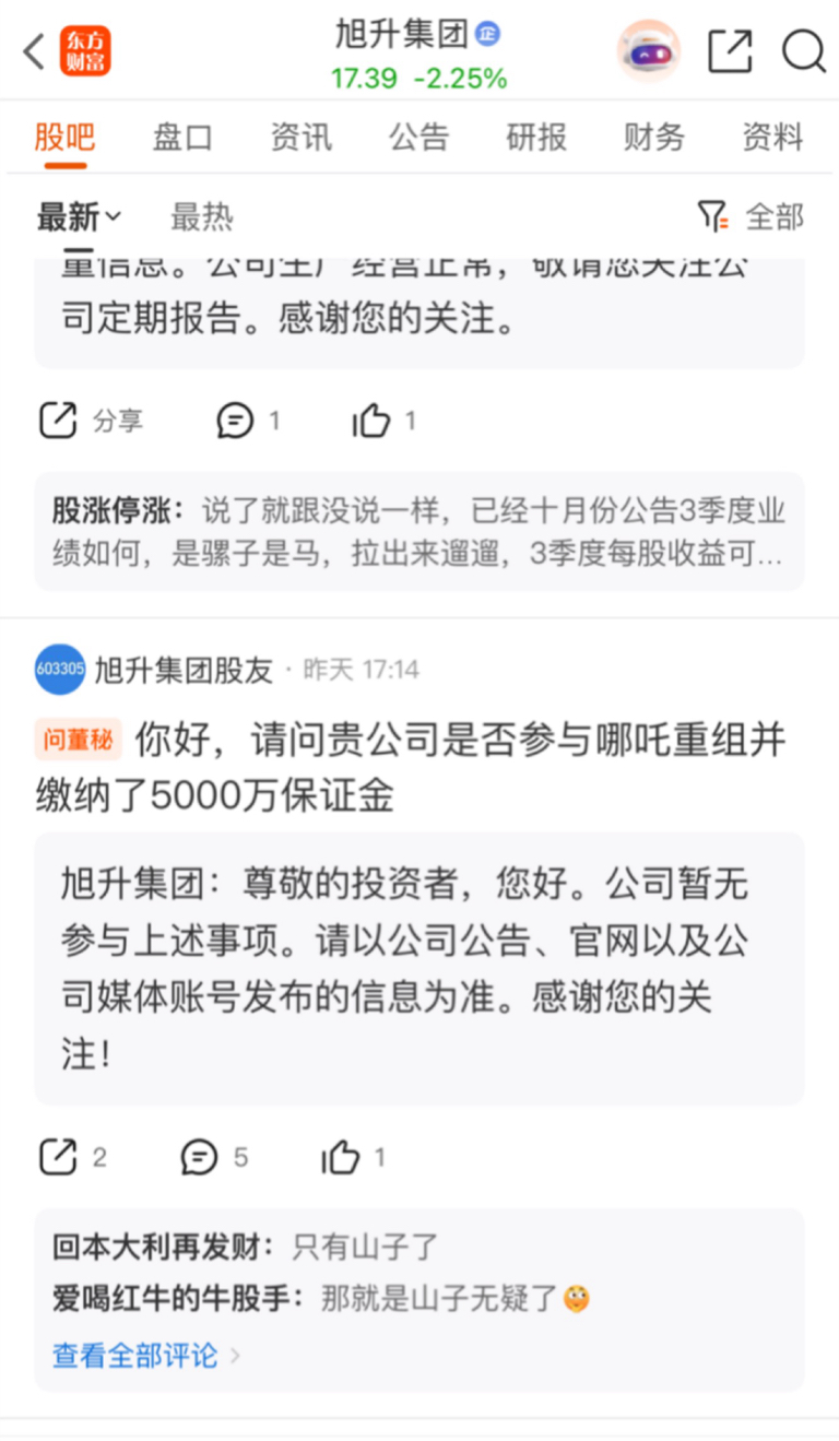某些居心不良的唱空狗在山子下面四处造谣,睁大眼睛看看到底是山子回复的还是旭升集团