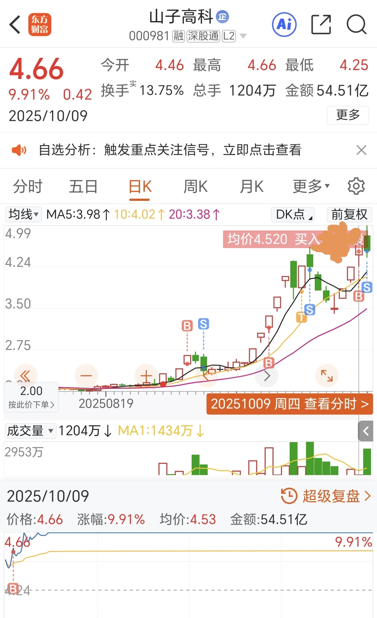 $山子高科(SZ000981)$ 买盛达资源本是无心插柳,开盘换仓山子,好在涨停,但山子也只干了一天就收队了,都没捞多少油水!9月份全仓拿下99.97%分战绩,山子贡献了五成份额。这个月能拿下99.95就不错了,因为假期少了一个星期交易日。