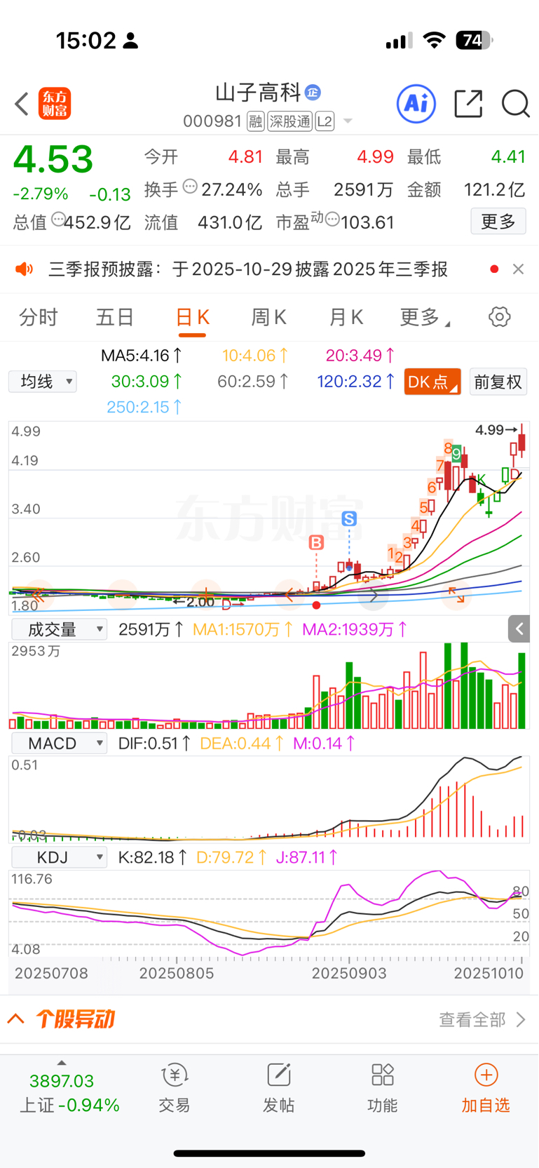 $山子高科(SZ000981)$ 大腿拍断,差一点就发财了
