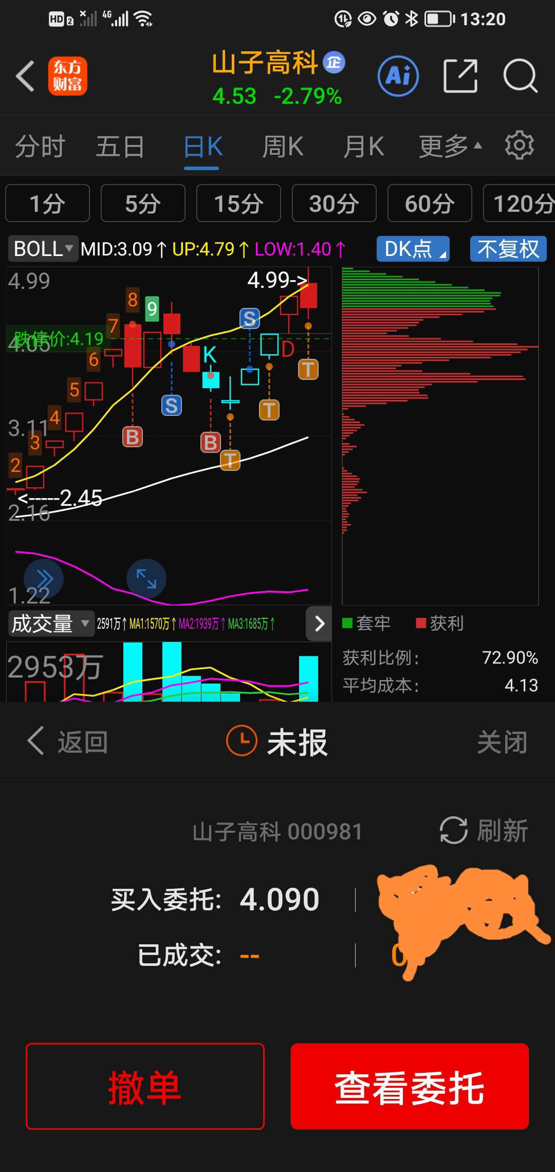 $山子高科(SZ000981)$ 早一点挂买进最好,
