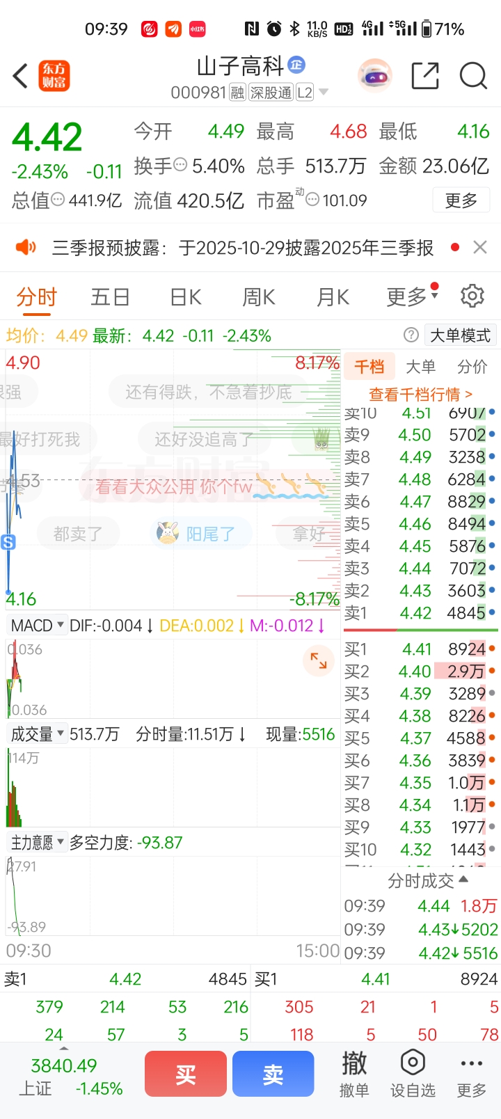 $山子高科(SZ000981)$ 他玛的,本来是要买的,我给按成卖了,糙