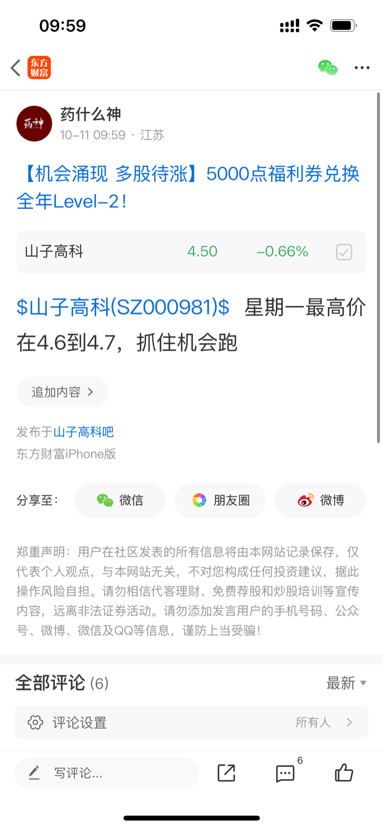 温馨提示: 1.根据《证券法》规定,禁止编造、传播虚假信息或者误导性信息,扰乱证券市场;2.用户在本社区发表的所有资料、言论等仅代表个人观点,与本网站立场无关,不对您构成任何投资建议。用户应基于自己的独立判断,自行决定证券投资并承担相应风险。《东方财富社区管理规定》