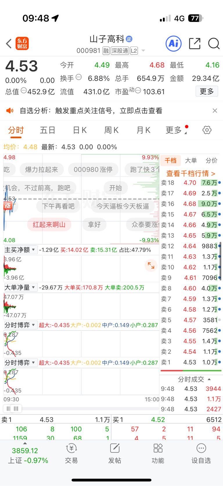 $山子高科(SZ000981)$ 抛压太大了 难啊我