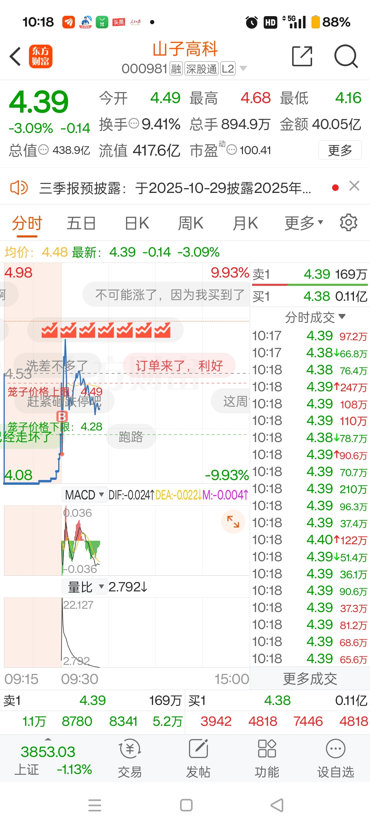 $山子高科(SZ000981)$ 今天不会让我亏吧