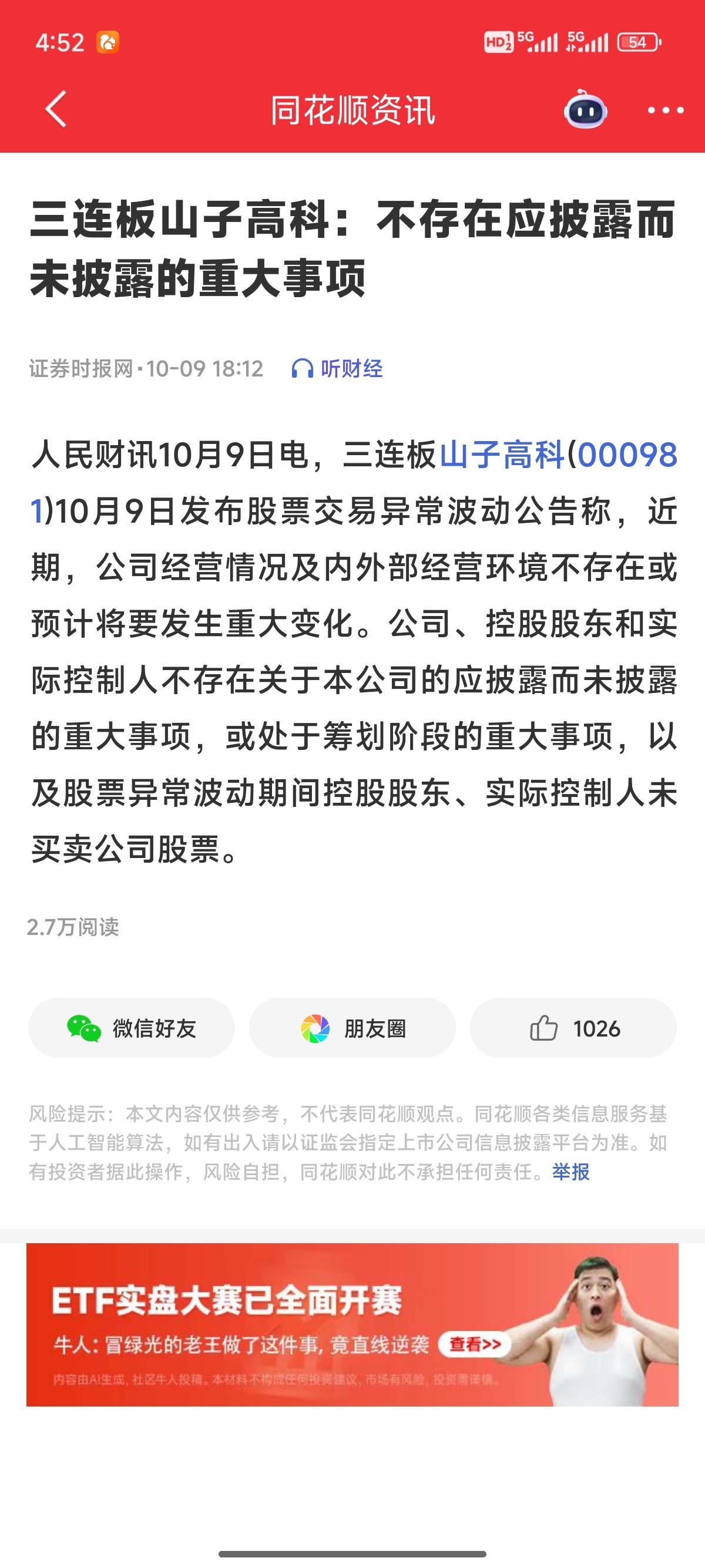 $山子高科(SZ000981)$ 看到没,之前的消息都是假的,都公告了,这次又套了多少人啊