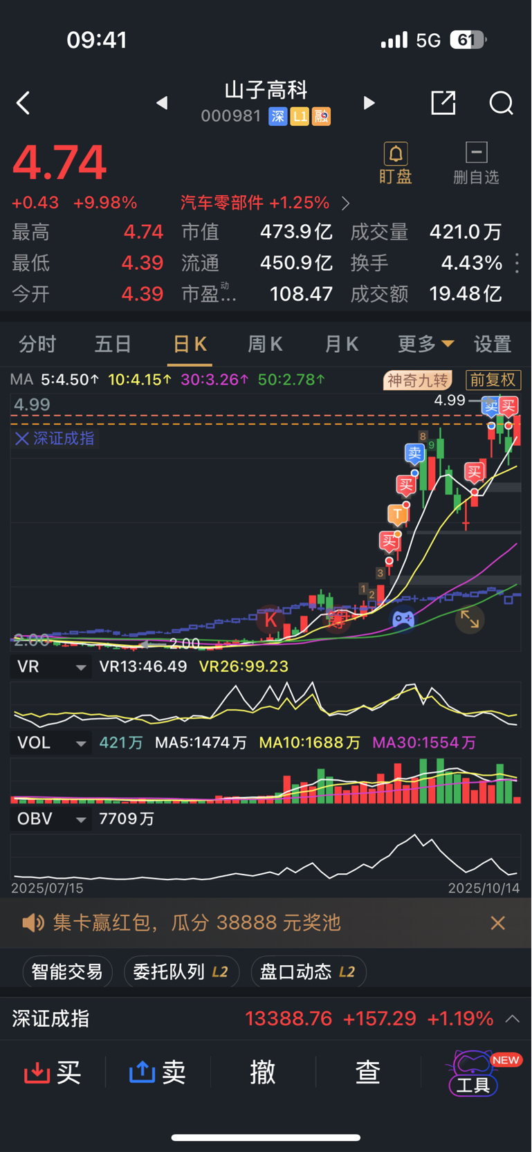 $山子高科(SZ000981)$ 开盘就下班的感觉真好