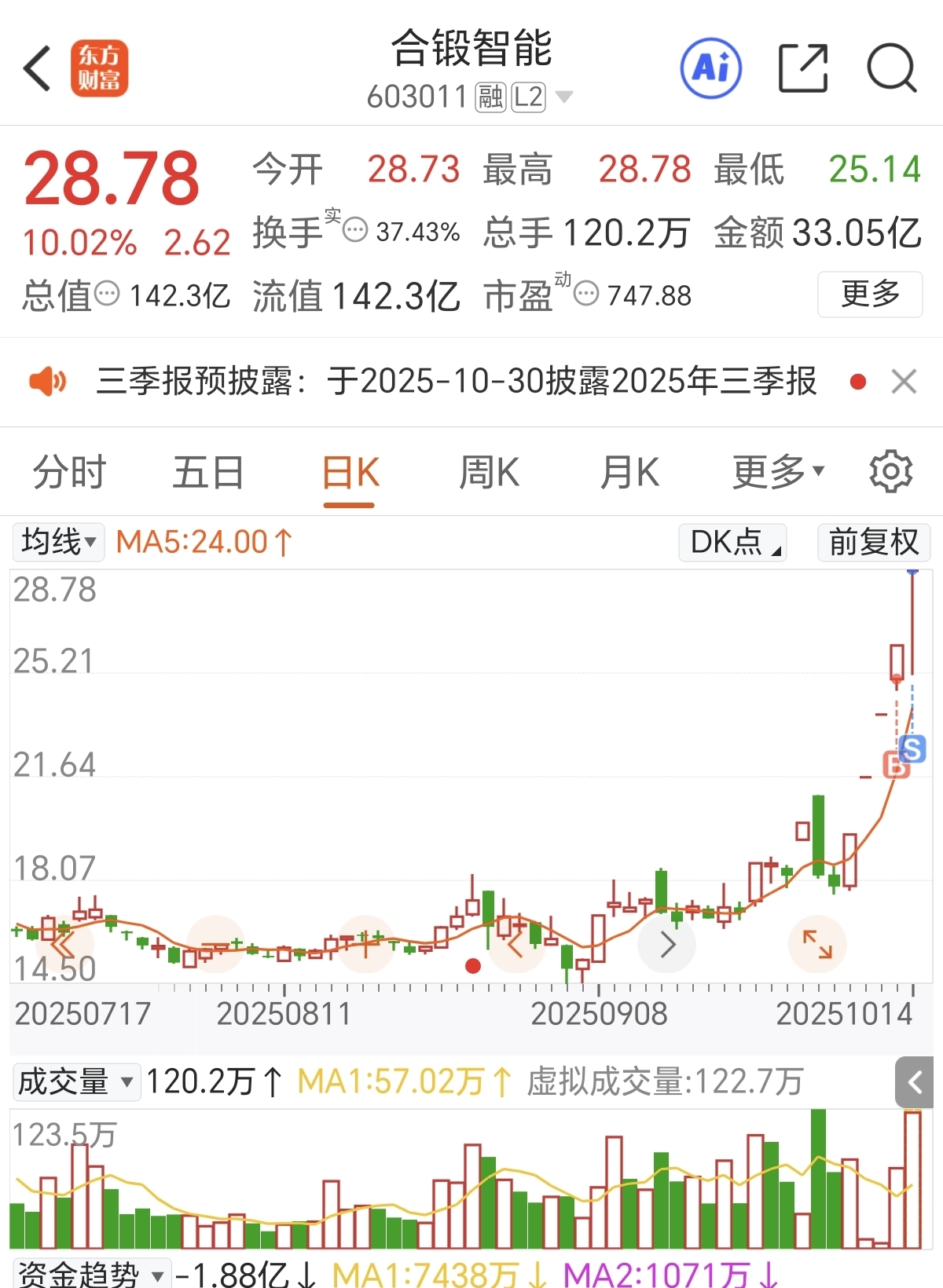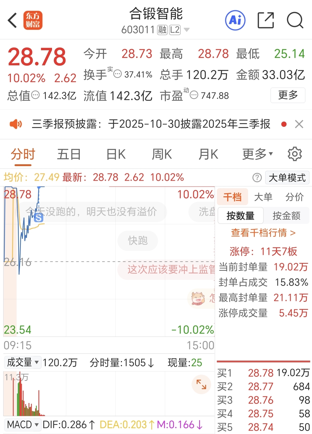 $山子高科(SZ000981)$ $合锻智能(SH603011)$ 合锻智能涨停我出来,祝留下的兄弟姐妹们明天再提一板!