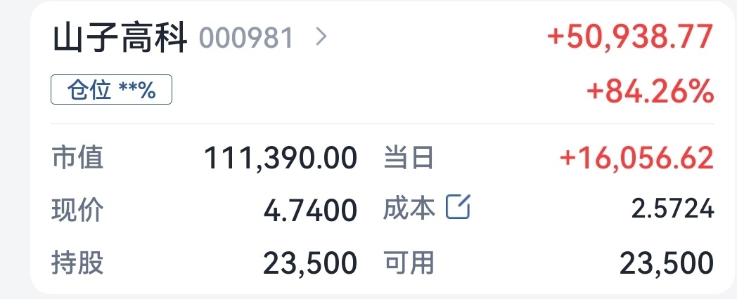$山子高科(SZ000981)$ 涨停卖了些降成本,只能炸板再买回了。