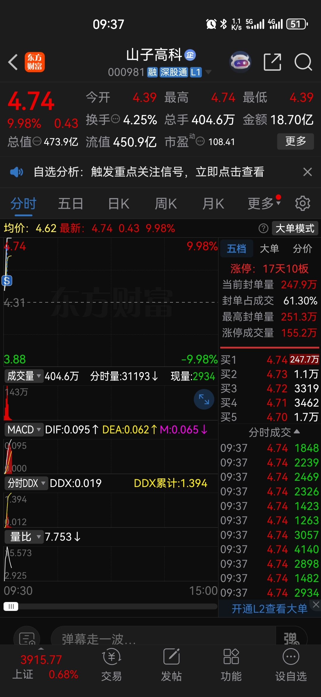 $山子高科(SZ000981)$ 留下的发财,有缘再见