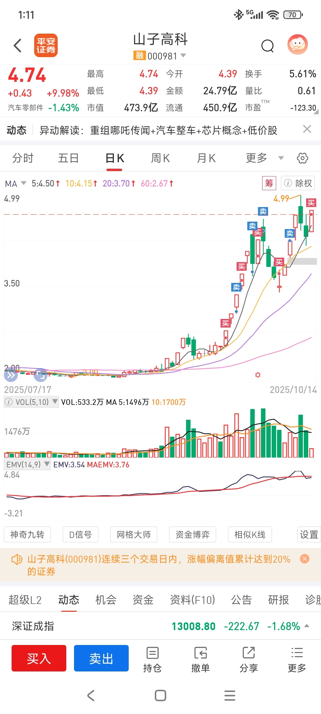 五进山子高科了。要把自己整成常山赵子龙了。依旧看多。回调就撤进攻就冲。