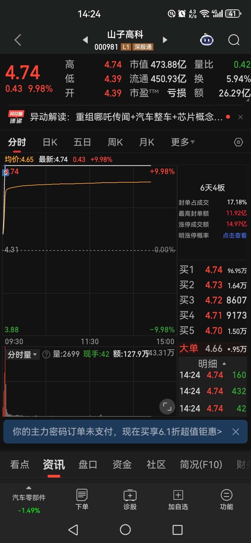 $山子高科(SZ000981)$ 我的错,昨天尾盘埋伏的,没想到,条件单自己成交了。