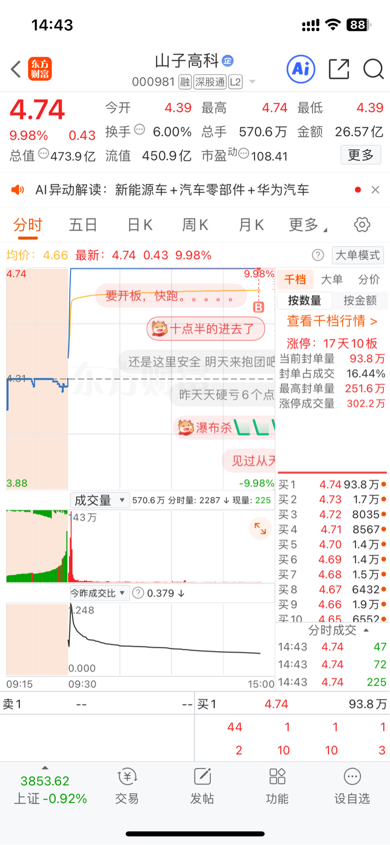 $山子高科(SZ000981)$ 10:30排的 进去了