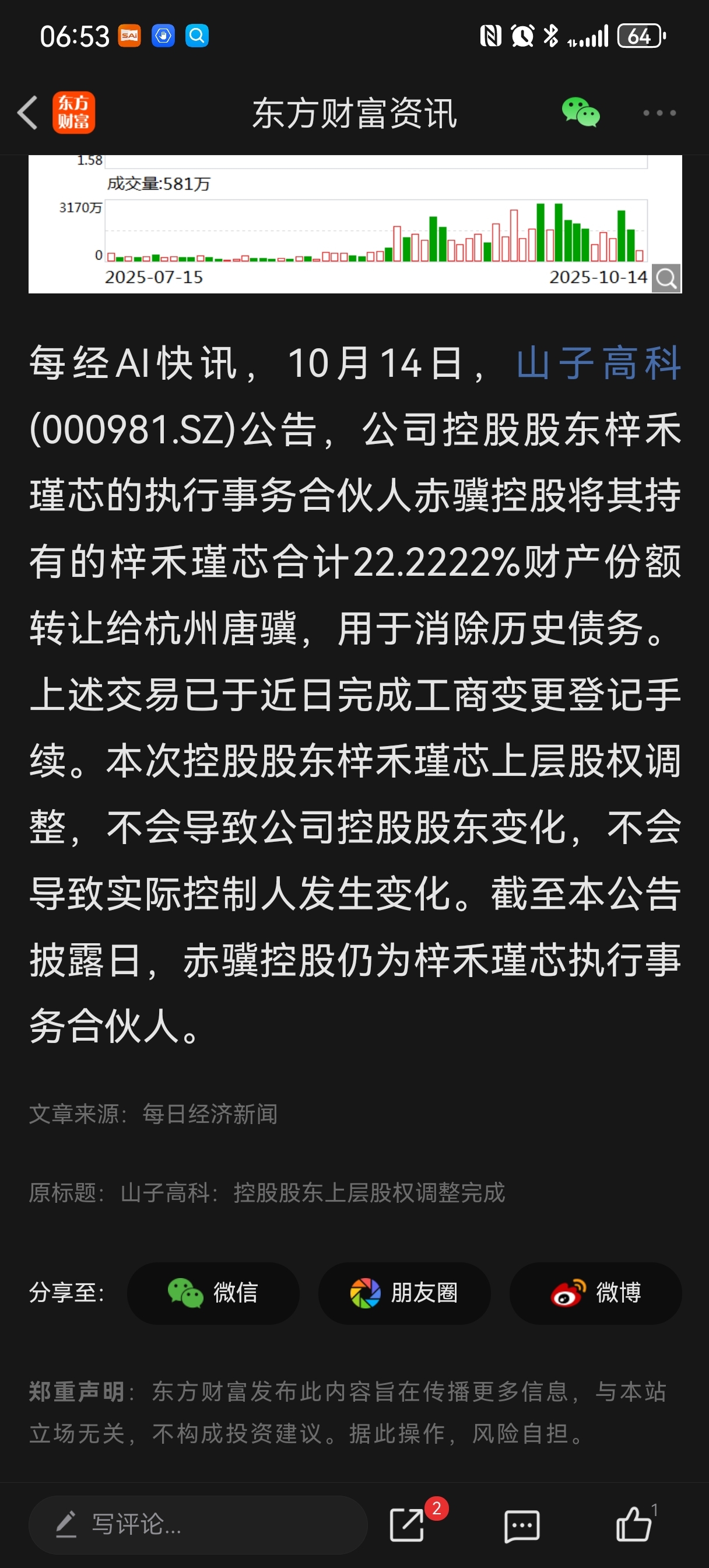 $山子高科(SZ000981)$ 这是撒意思