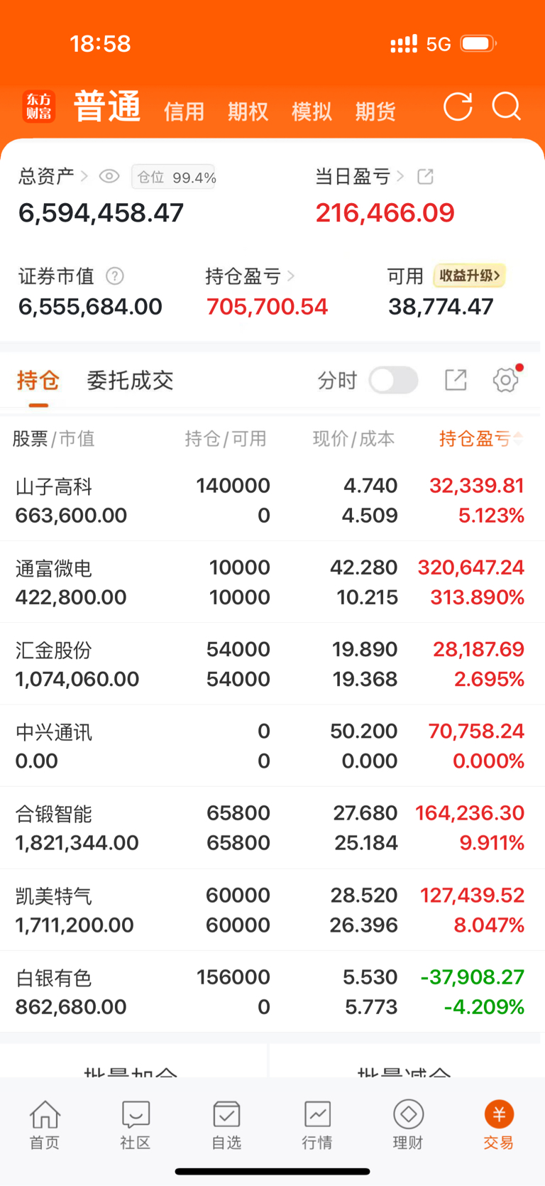 波大侠实盘:山子高科早盘激进买入!通富微电今天跌停了,明天得找机会卖了!汇金股份