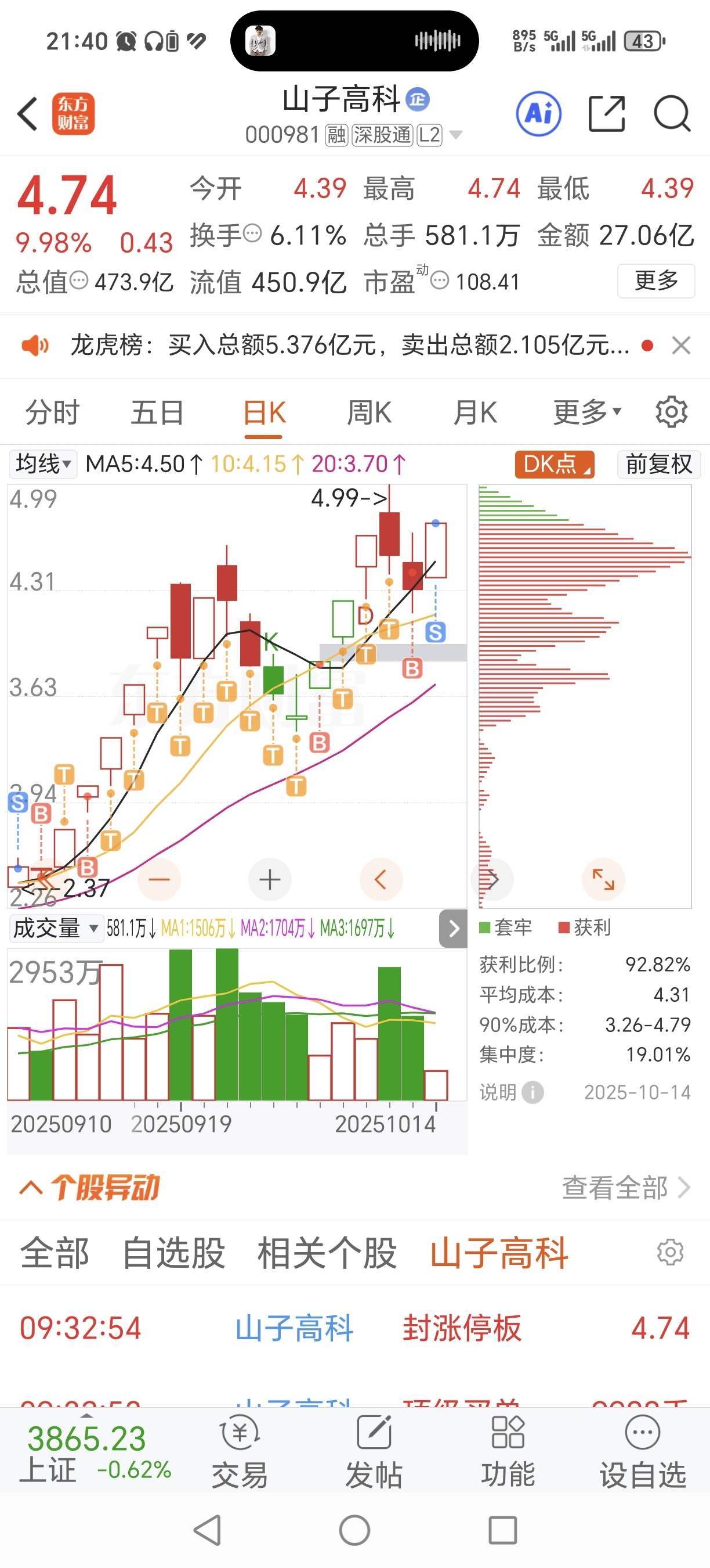 $山子高科(SZ000981)$ 卖飞了吗,明天能接回来吗?