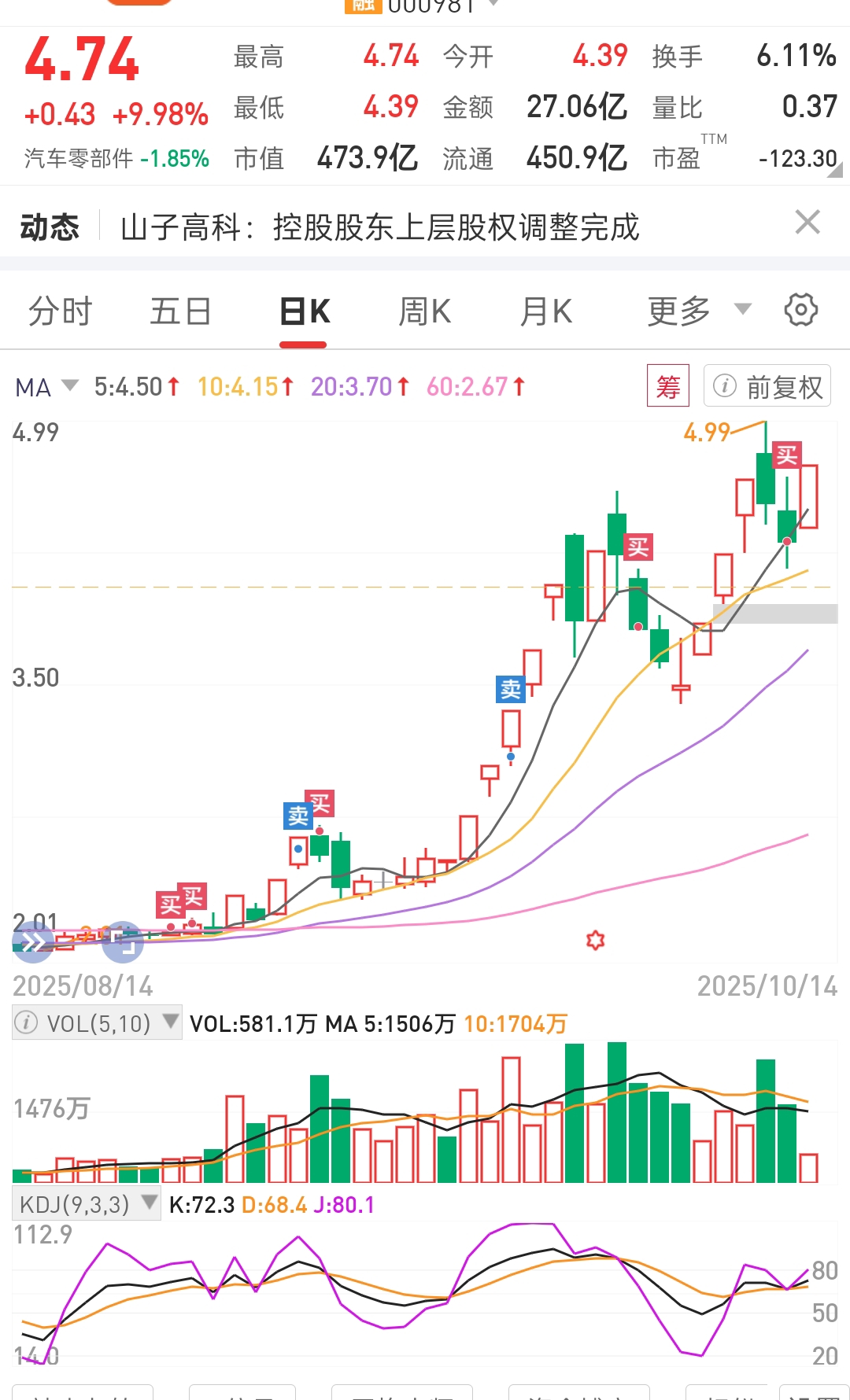 $山子高科(SZ000981)$ 8.25建仓1层,26补到5层,之后一直也5层操作,昨天趁着下跌满仓进的。就是干!!
