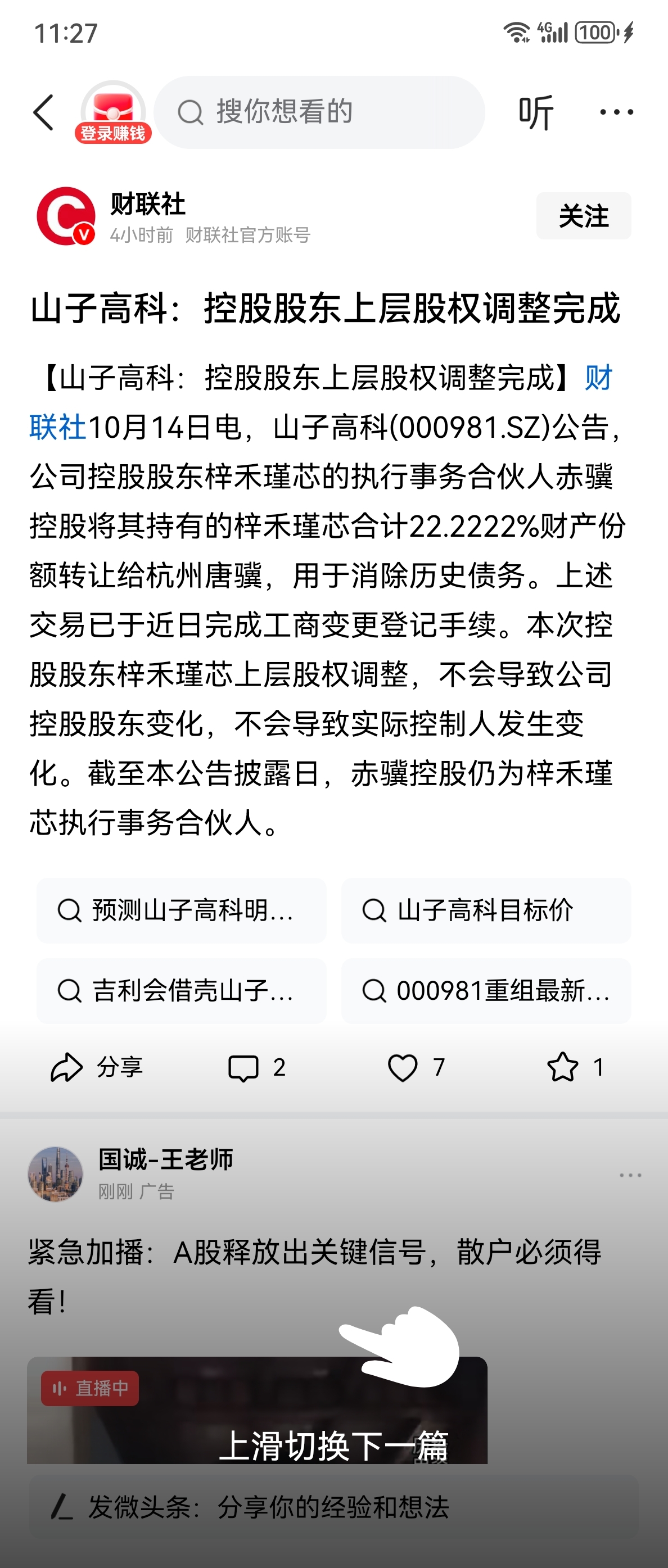 $山子高科(SZ000981)$