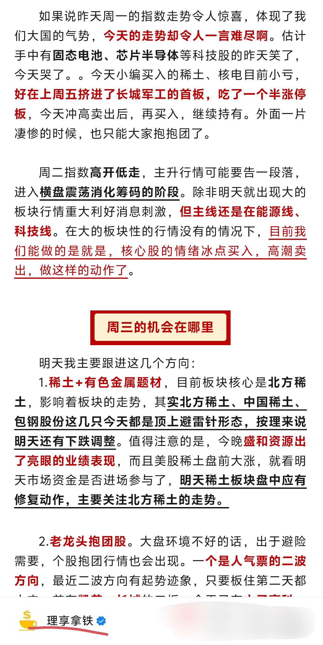10.15日周三盘前的重要思考!周二指数高开低走,周三怎么走?完整版分析见图中左