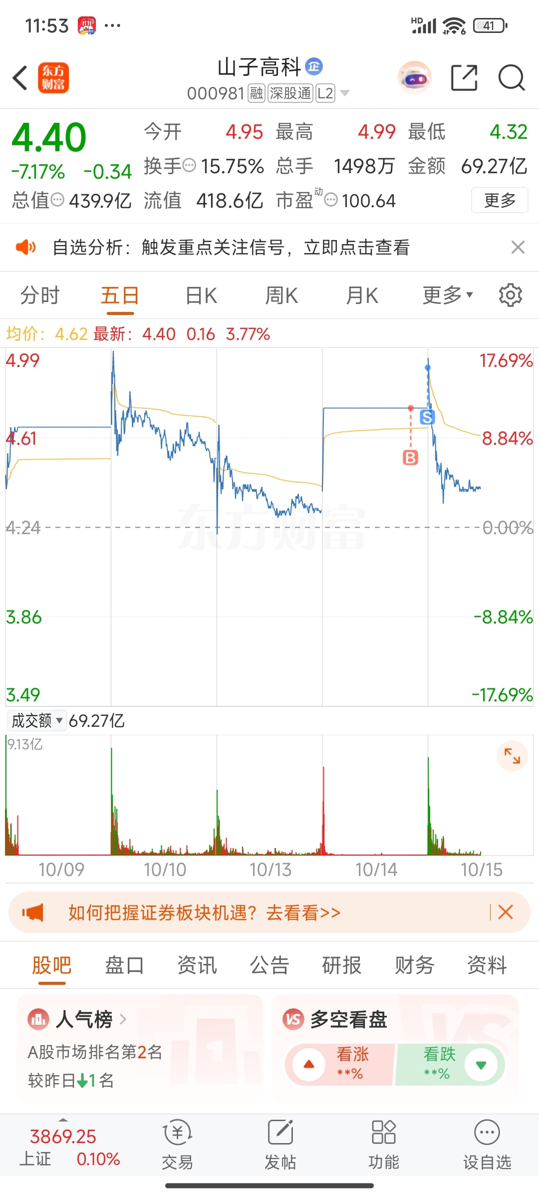 $山子高科(SZ000981)$ 开盘抢跑