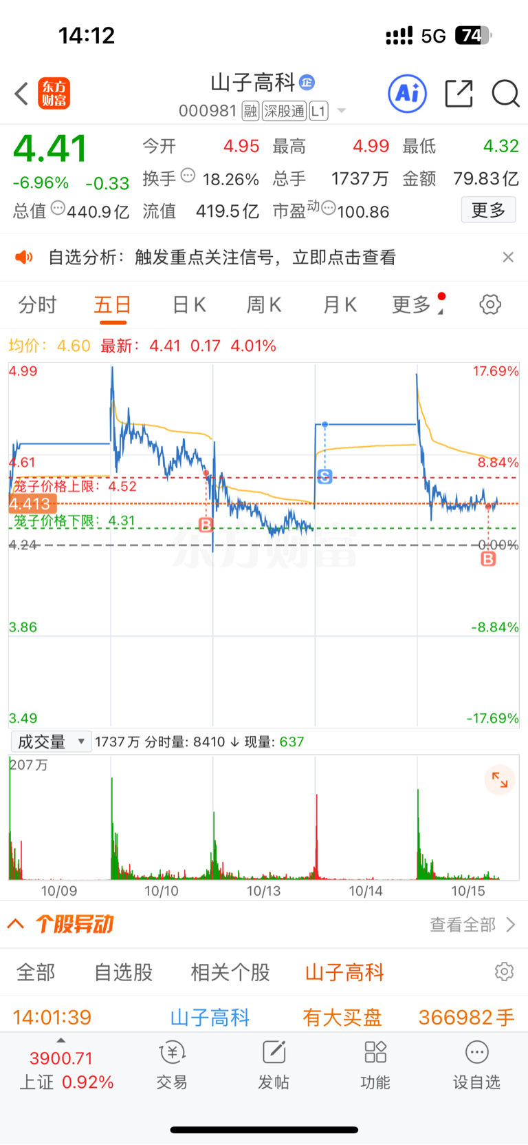 $山子高科(SZ000981)$ 有像我一样,卖了又忍不住冲进来的嘛?,我以为它要拉起来,结果一天要死不活的