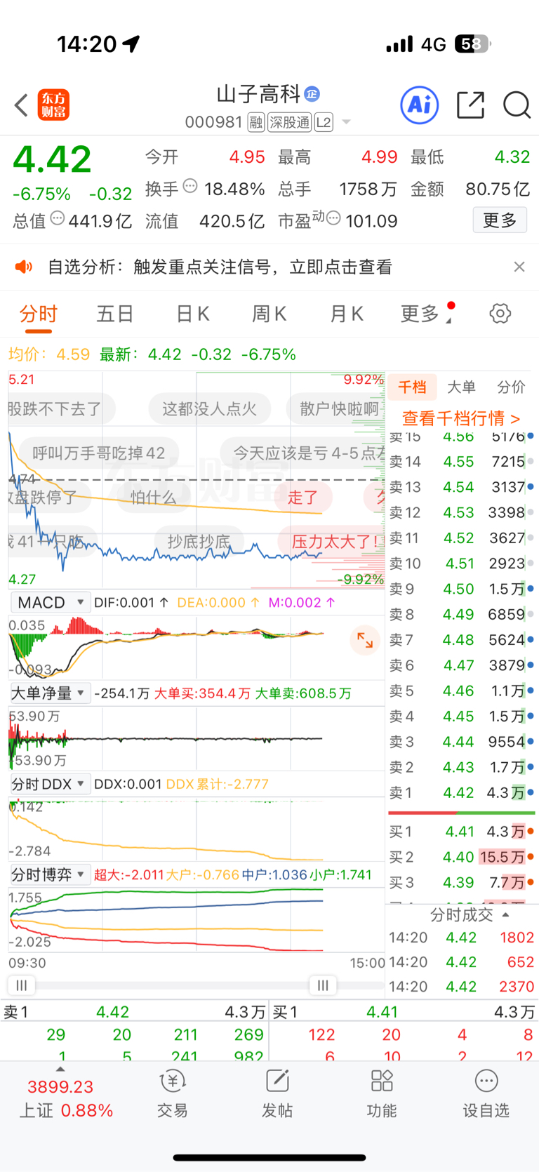 $山子高科(SZ000981)$ 涨一分钱难过登天