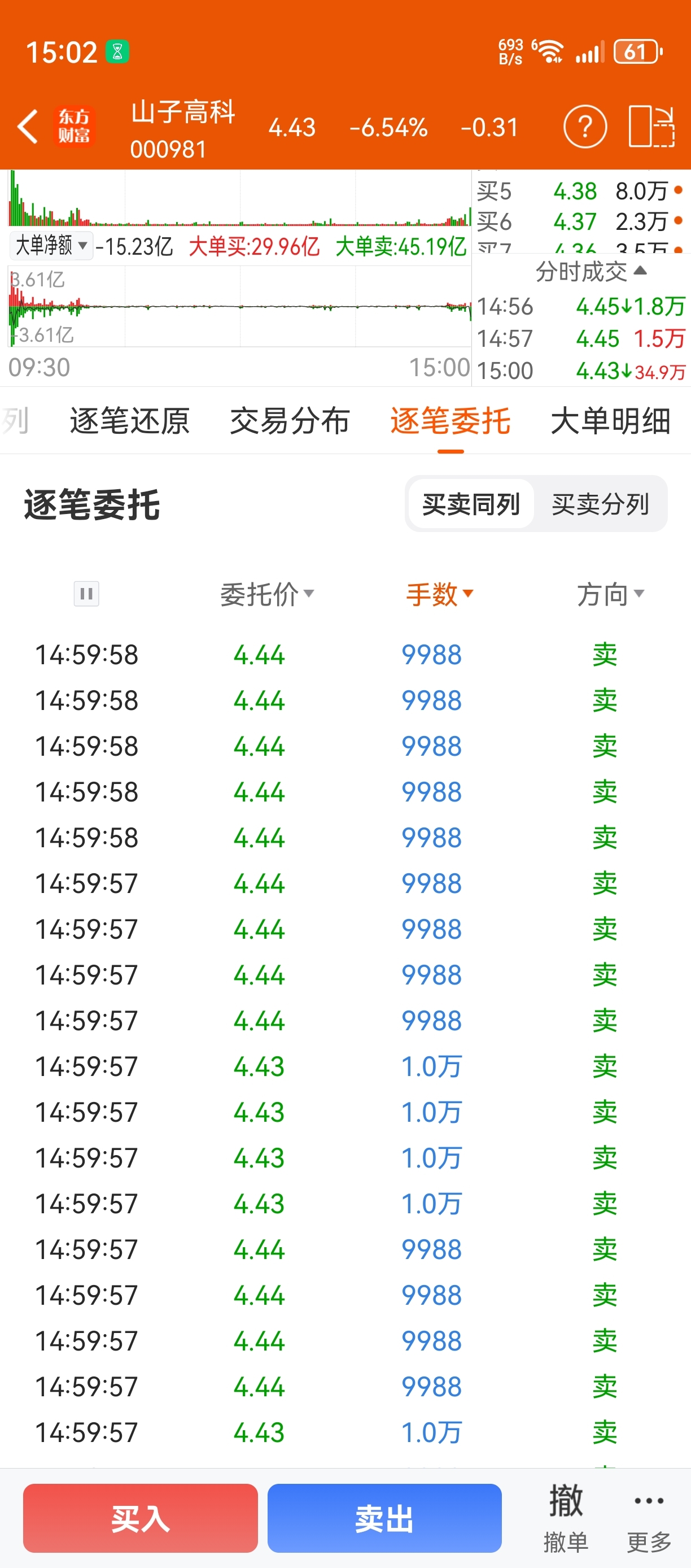 明天完了,大哥十多万手挂4.44卖出没跑掉,明天还要砸盘