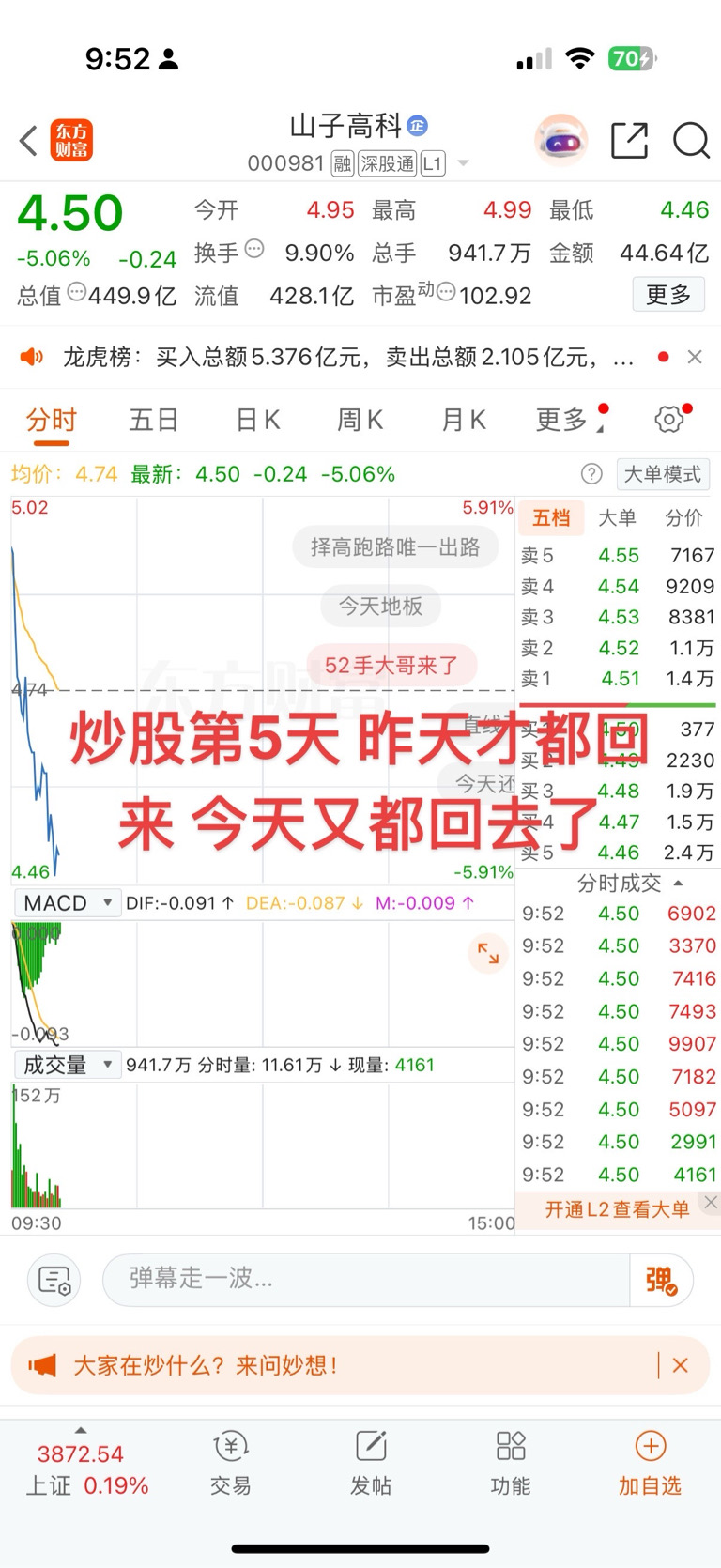$山子高科(SZ000981)$ #收盘点评# #炒股日记# #强势机会# 昨天刚刚回来 今天又回去了