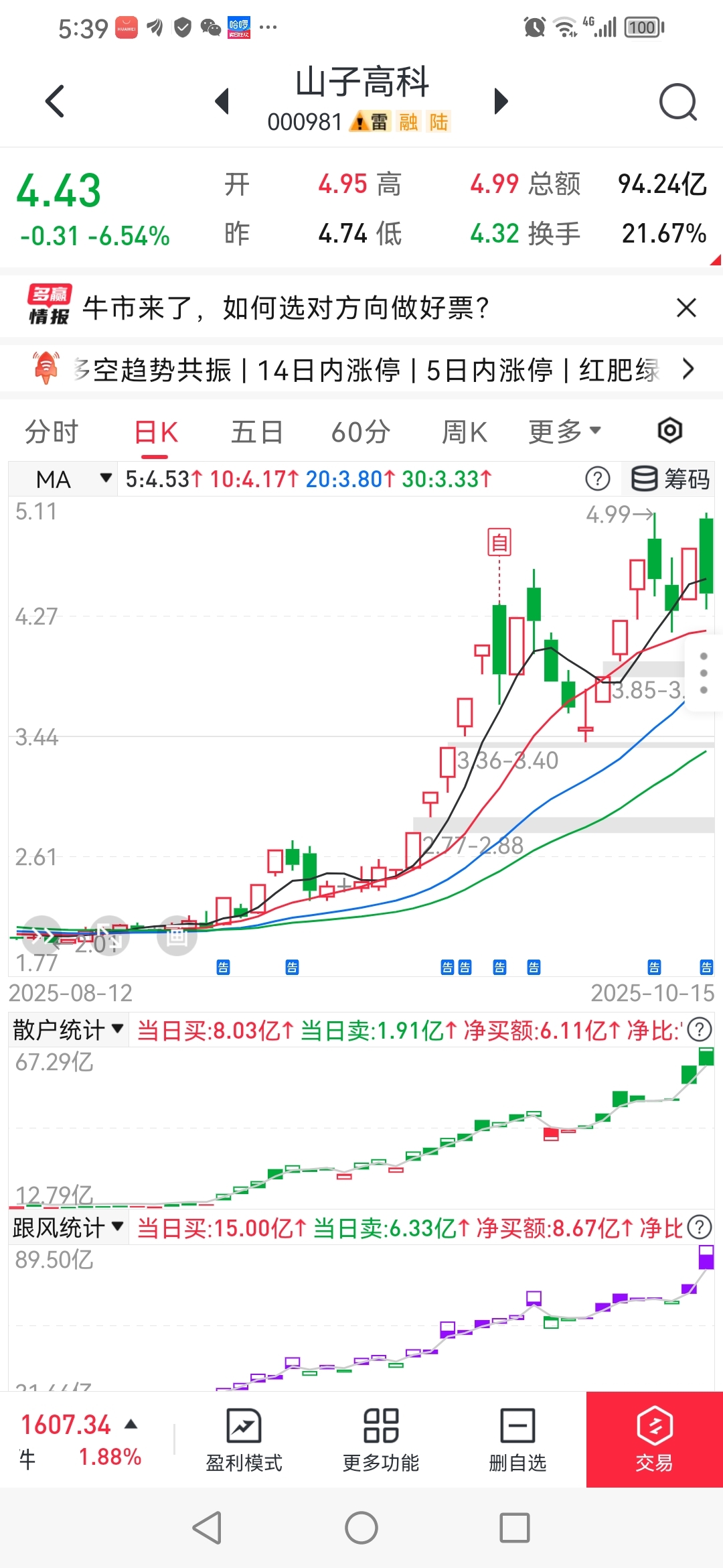 $山子高科(SZ000981)$ 经传多赢手机版数据短线王123元,那量化只对接一部分一批手机和互联网开户散户,不是对接所以小单散户。