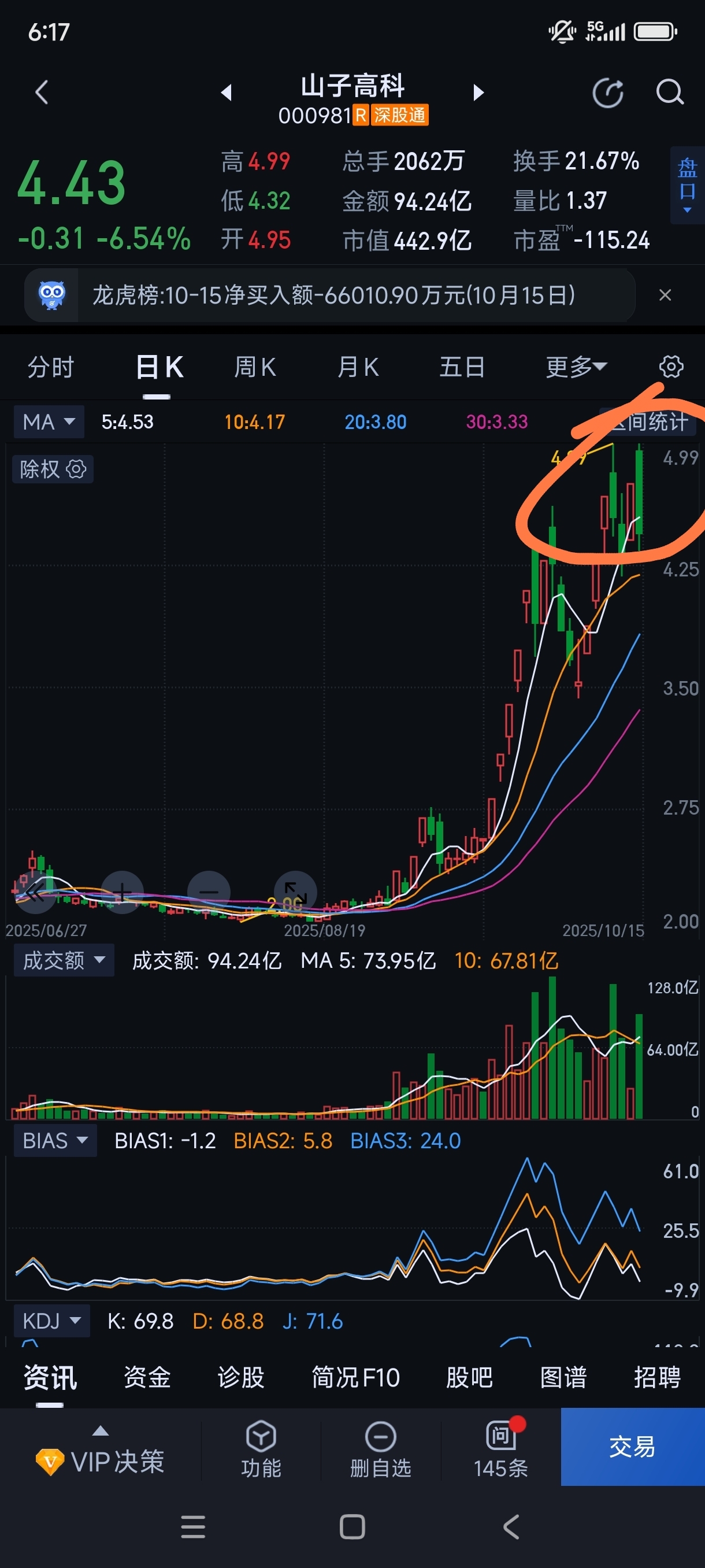 $山子高科(SZ000981)$ 本人的观点,4.99元第一次出来有股友们讲出对子了,就是头了!现在又出了一个4.99元有股友们讲是双头了!消息面,看哪吒汽车是否真正的收购,基本面盘子太大,后期的变数太大,个人感觉跌的概率多!虽然我全身被套,这是事实