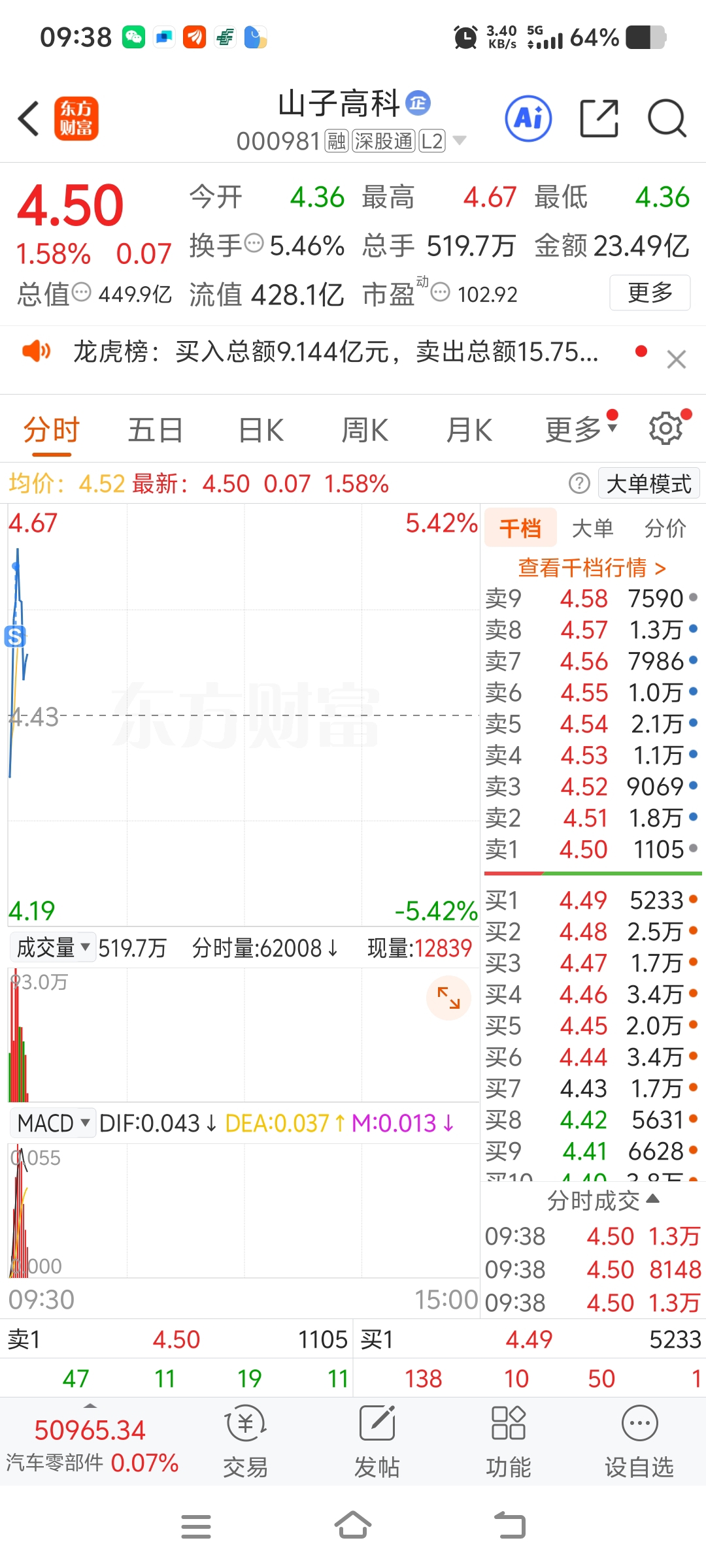 $山子高科(SZ000981)$ 继续做T,下午尾盘再接回。