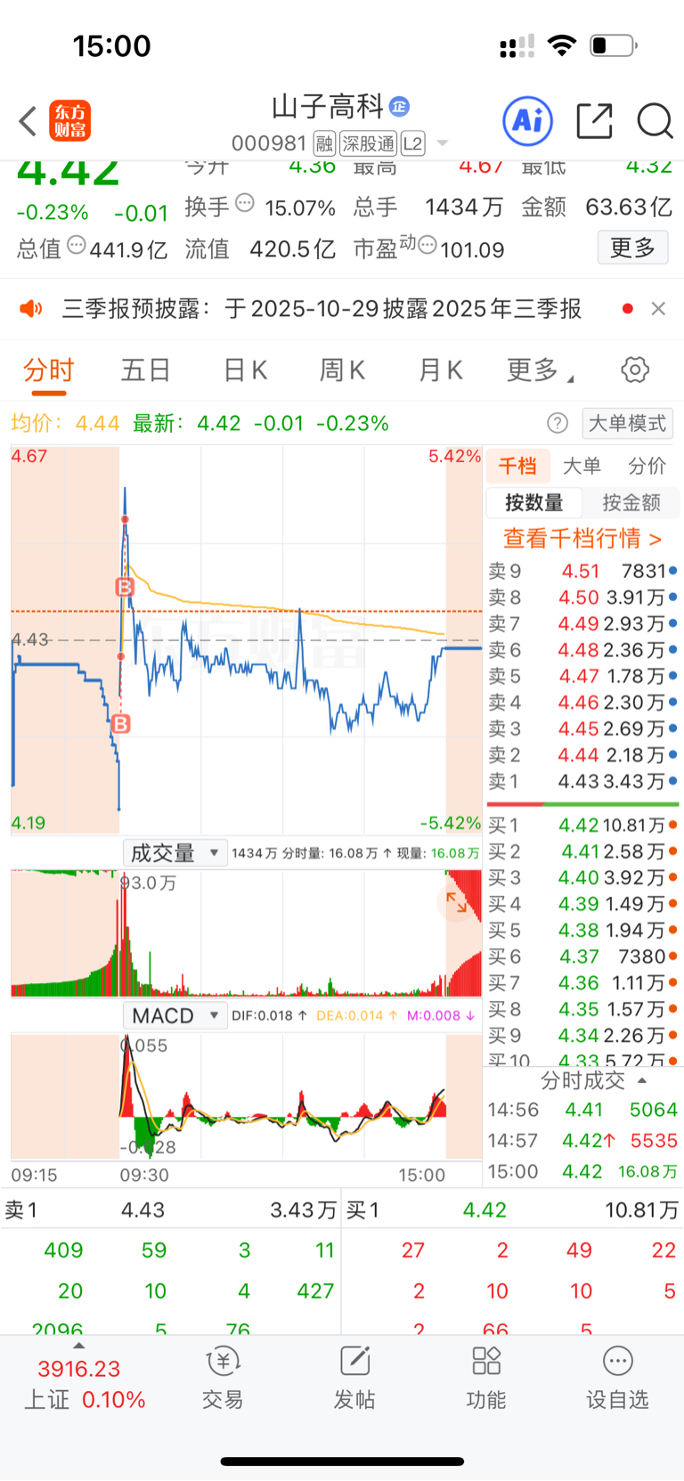$山子高科(SZ000981)$ 唉!早上买慢了还想着开盘下砸在买,结果开盘直接拉买到山上去了,不然今天也不会亏明天给我涨