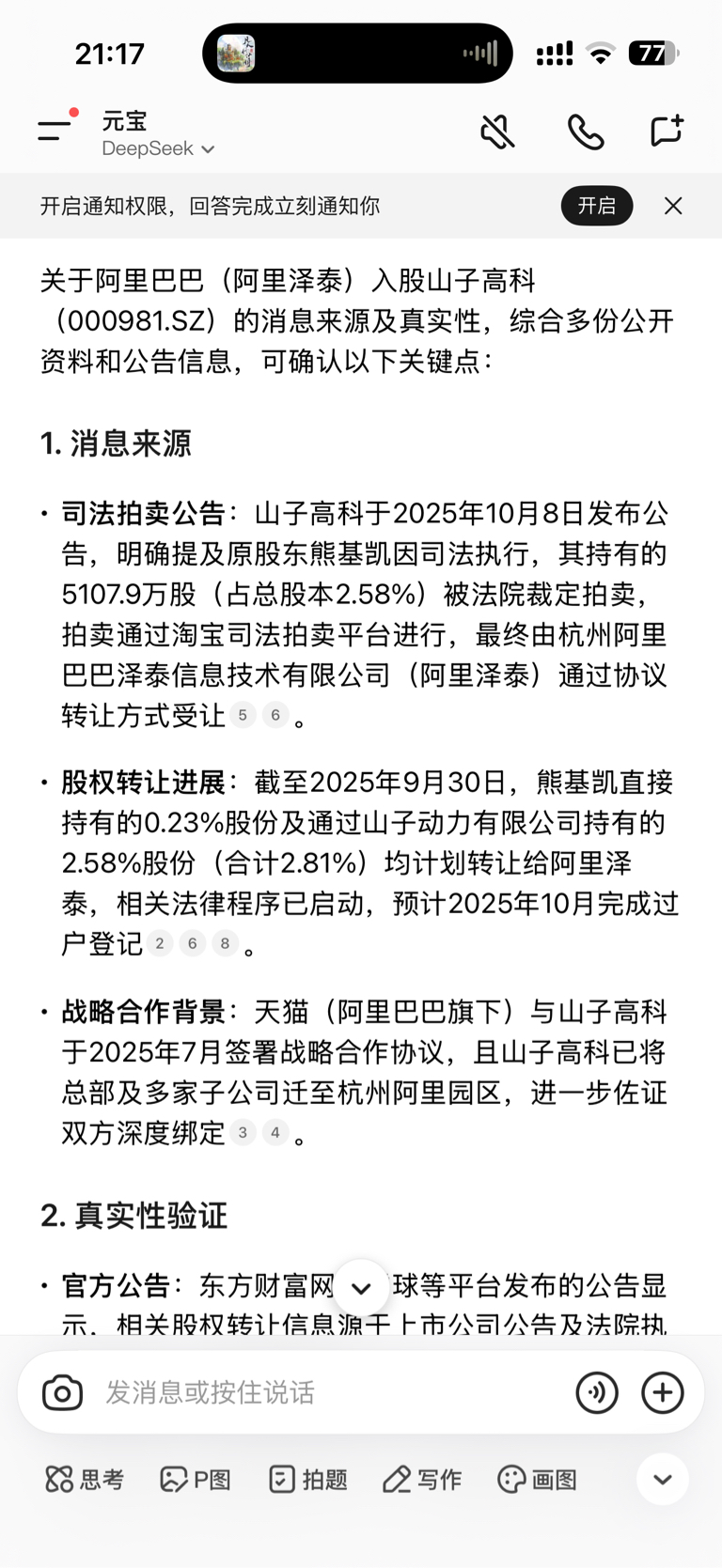 $山子高科(SZ000981)$ 阿里入股山子这个信息是不是已经兑现涨幅了呀?