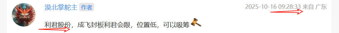 这个是跟着成飞在走的,消息面上,印尼采购我们的纤10产品,利好成飞概念,利君子公司成都德坤,是专门做航空零部件制造业务,为成飞提供结构件外协加工业务,所以也是成飞概念。昨天成飞集成涨停太快,来不及提势出来,所以我们选择了相对低一点,同时确定性强的利君股份,早盘也是跟成飞集成一起上冲,但是板块强度不够,所以还是回落 ,不过今天还可以继续看成飞,如果成飞超预期继续连板,那么利君股份还能继续涨。出场点,就是看成飞什么时候走弱,当成飞走弱了,利君股份也就没有预期了。