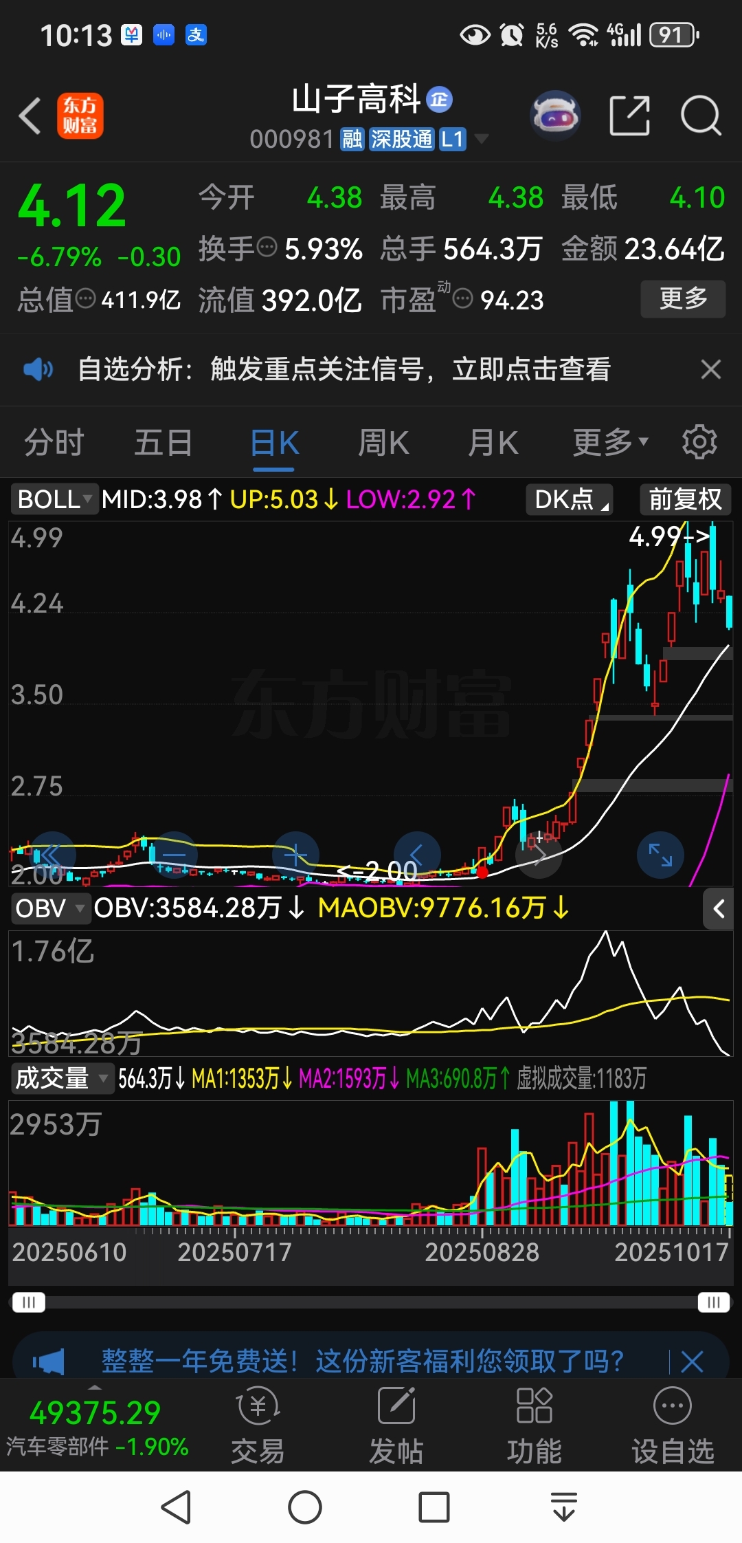 $山子高科(SZ000981)$ 出货成功!看看OBV指标!