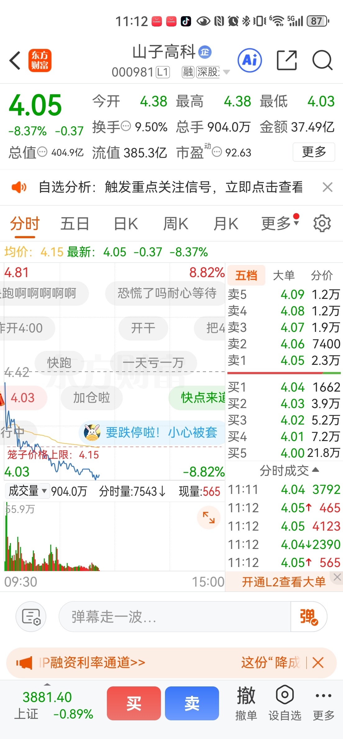 $山子高科(SZ000981)$ 估计跌到拍卖价止跌,然后走织布机行情,拍卖的被阿里买下,之后一路上涨