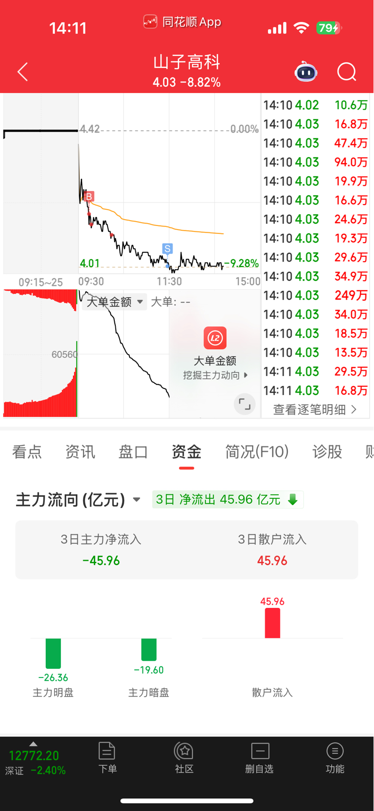 $山子高科(SZ000981)$ 三天跑了45个亿 你们还不跑?周一等跌停?肯定重组有问题呀。主力才跑了。