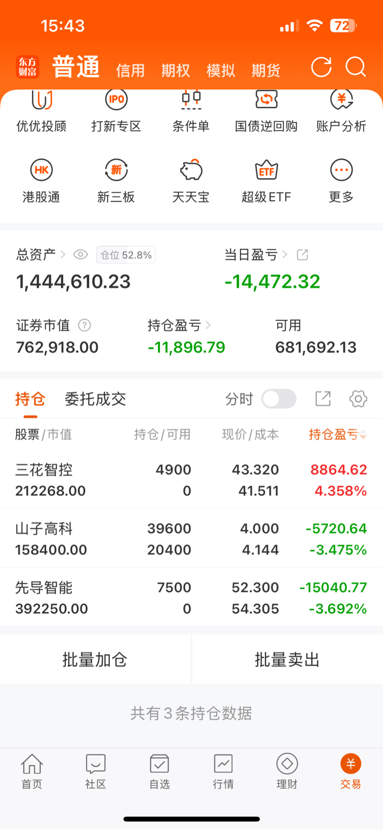 总体来说不亏,之前三个涨停赚了6万清仓走了,前天进来的目前浮亏一点。等下周看看行