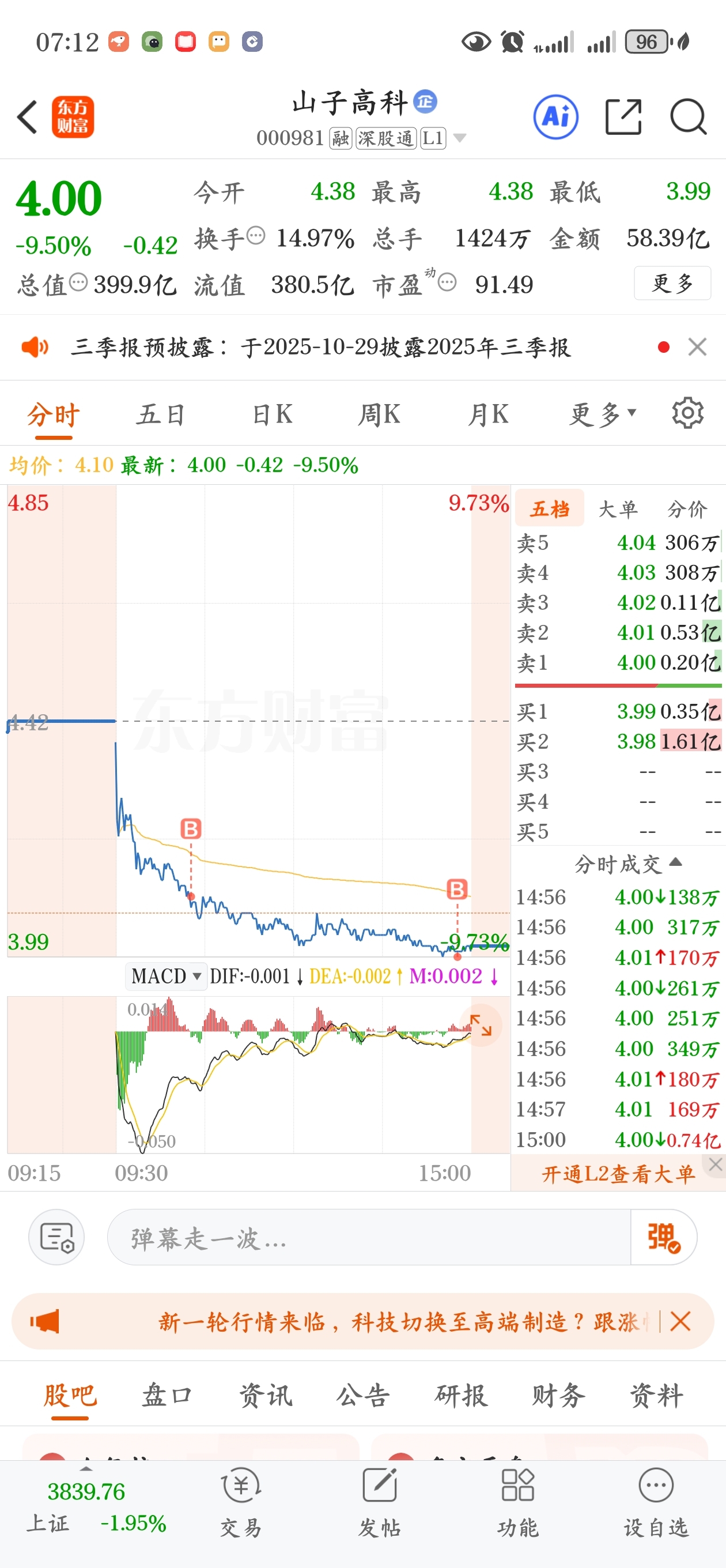 $山子高科(SZ000981)$ 星期一能不能安全的出来,实在不行就砸盘了