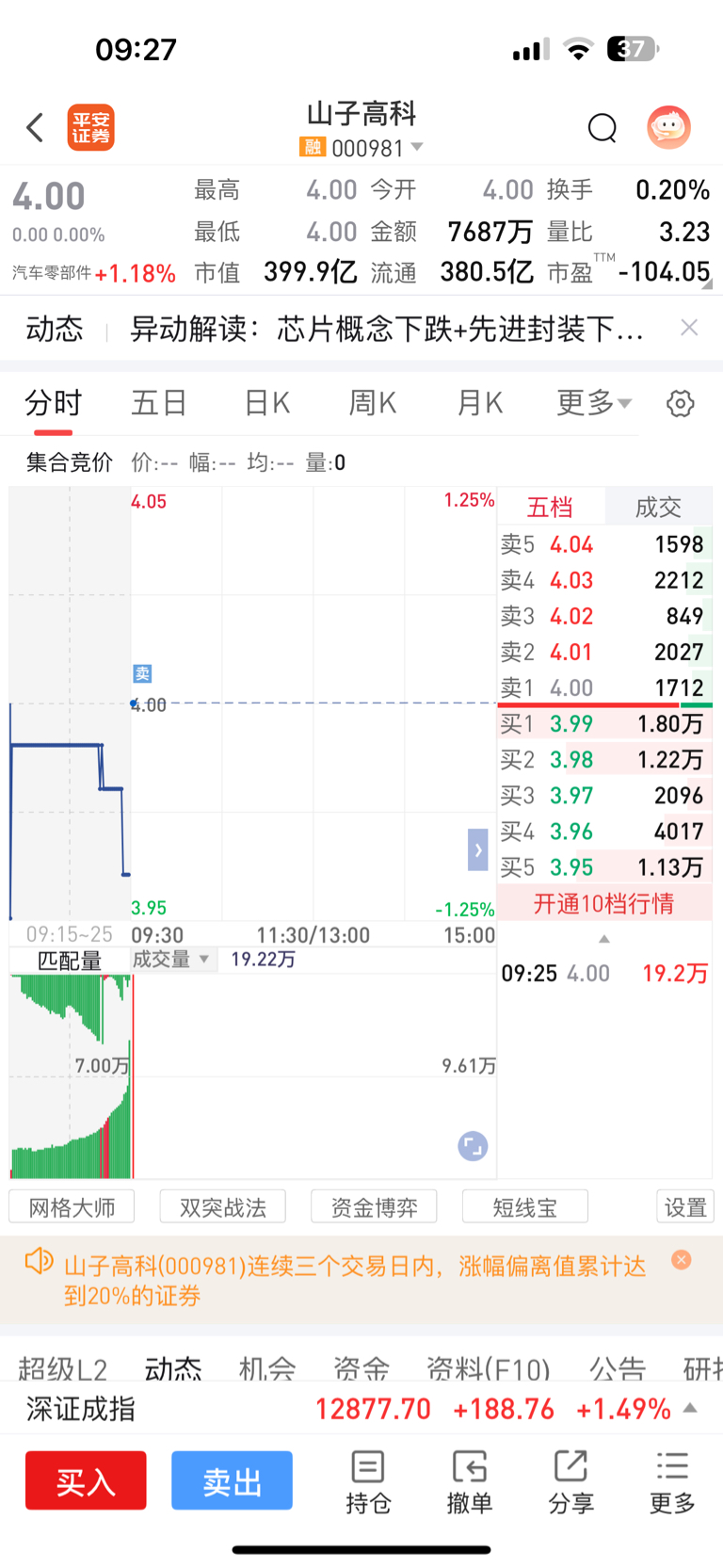 $山子高科(SZ000981)$ 卧槽挂单秒成交
