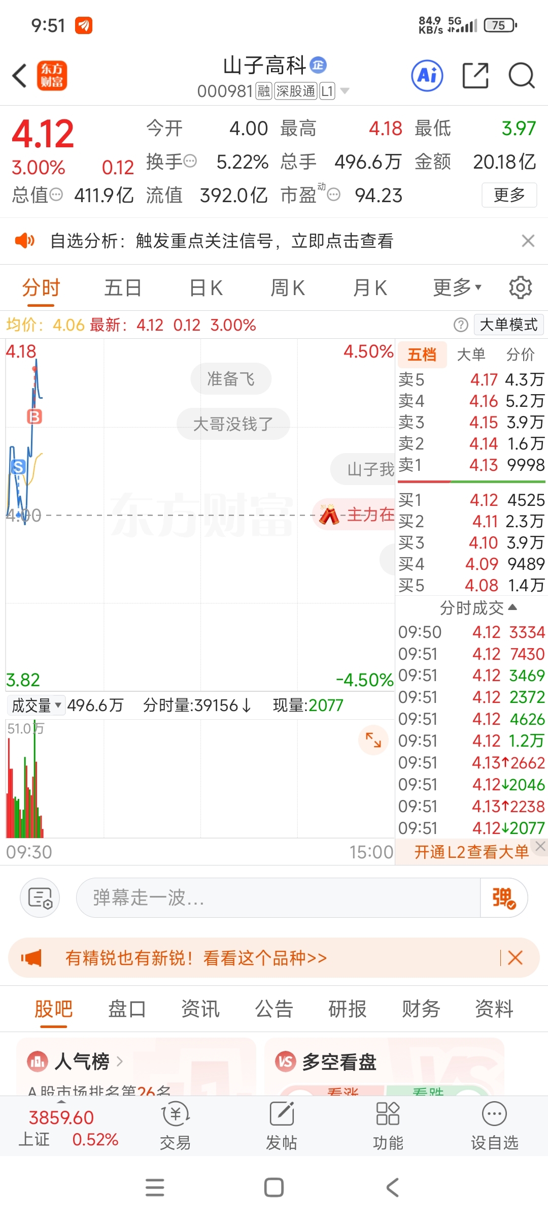 $山子高科(SZ000981)$ 666我做了个4个点倒t