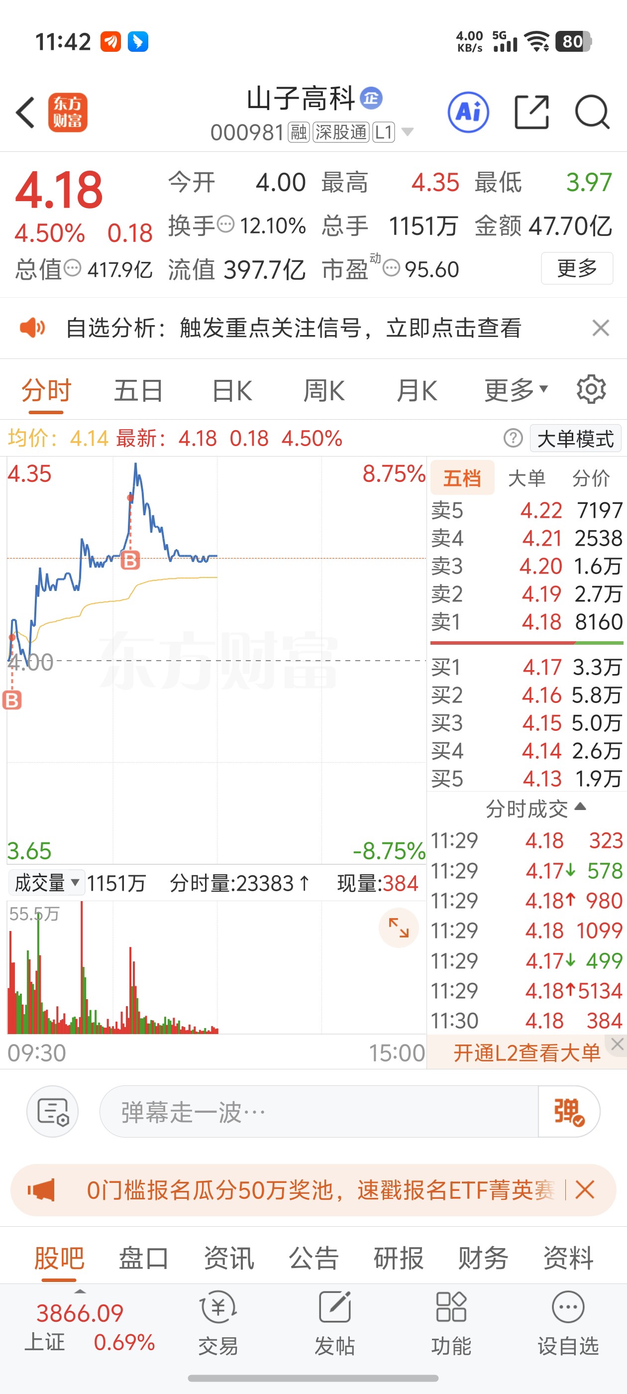 $山子高科(SZ000981)$ 你要就跌要就涨,悄悄在我成本线反复横跳给我玩心跳是吧?