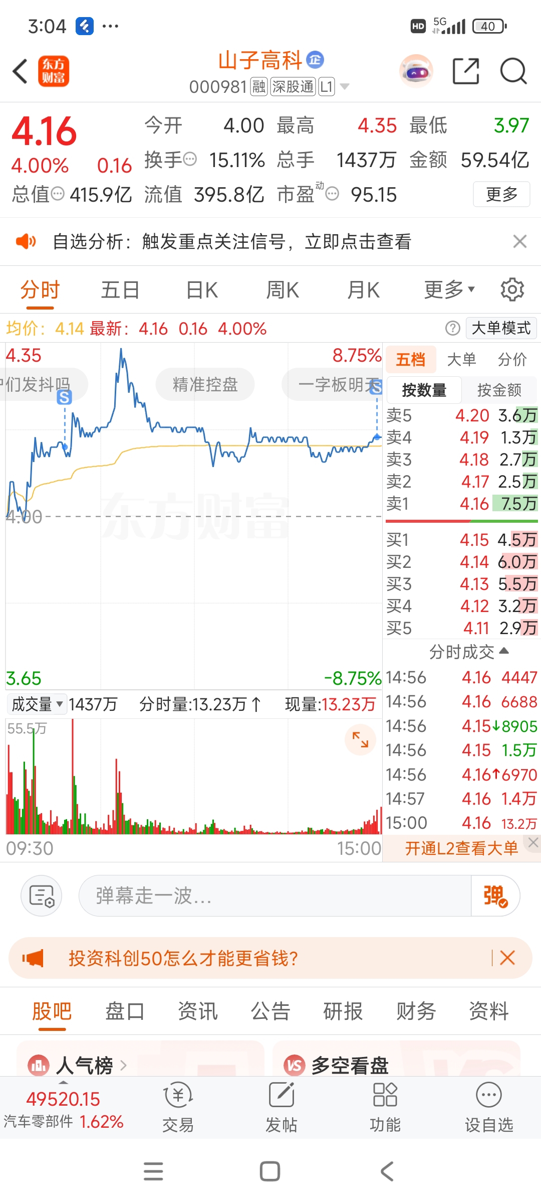 $山子高科(SZ000981)$ 我怕了走了,最高点以为要封板没卖,结果会撤了。尾盘走了。