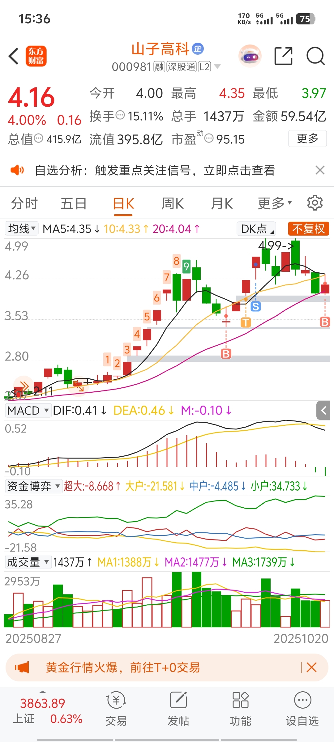 $山子高科(SZ000981)$ 成也好,败也好。都是自己操作,个人操作手法喜欢跟大资金,山子操作就是几个10万手以上,关注了就进去了,正常来说明天还是震荡收中阳以上,后天涨停合适,持股肯定看好