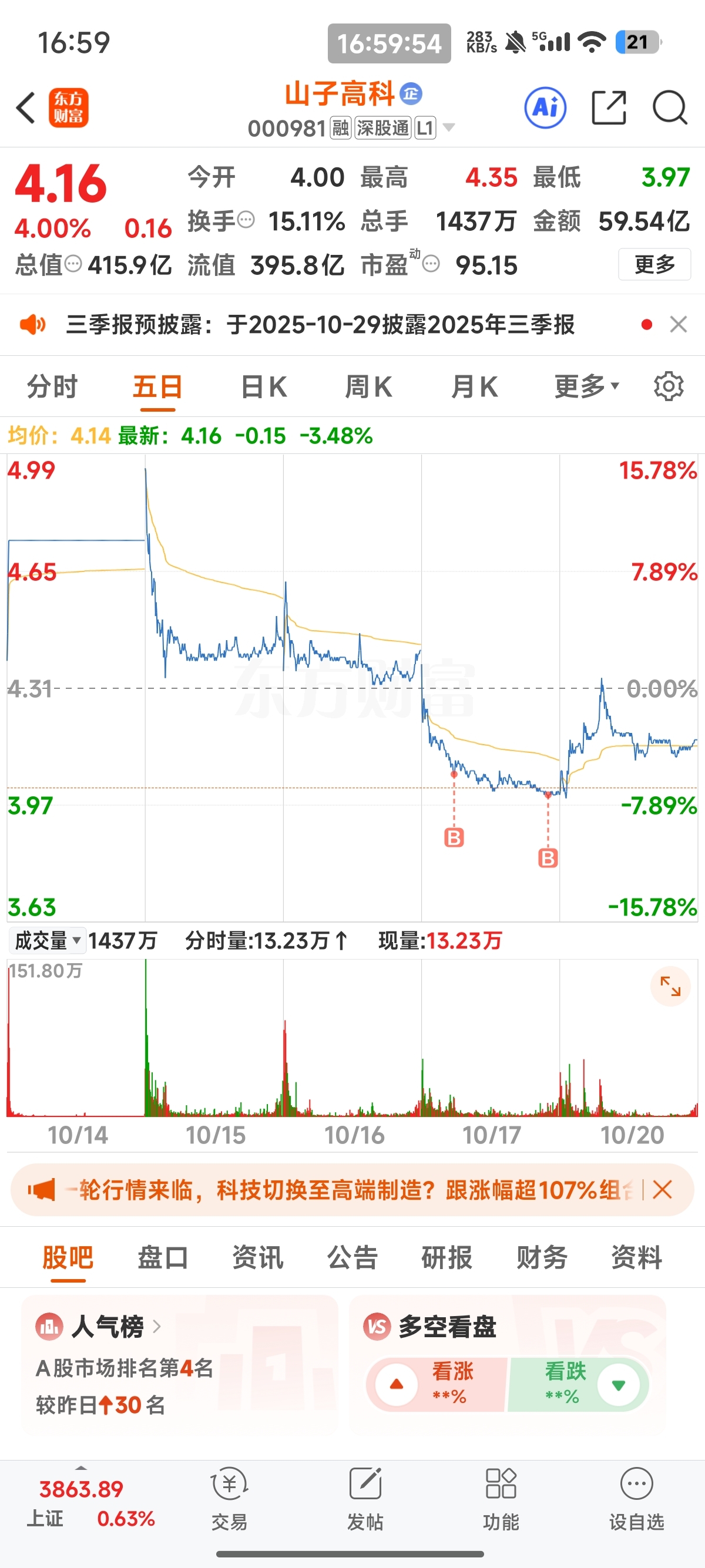 $山子高科(SZ000981)$ 八个点没有走 ,有点傻了