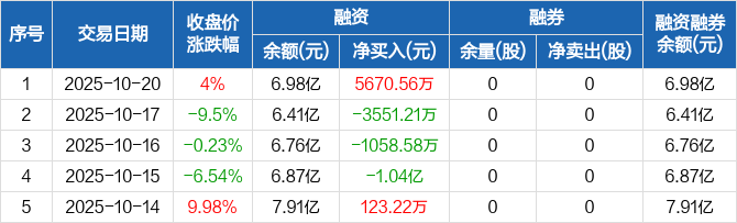 山子高科:融资净买入5670.56万元,融资余额6.98亿元(10-20)