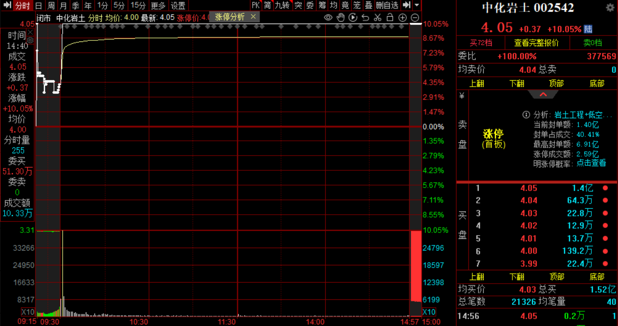 $中化岩土(SZ002542)$:竞价抢筹,深地科技概念股,深地科技前排大单一字板,毫不犹豫上了,成功涨停。