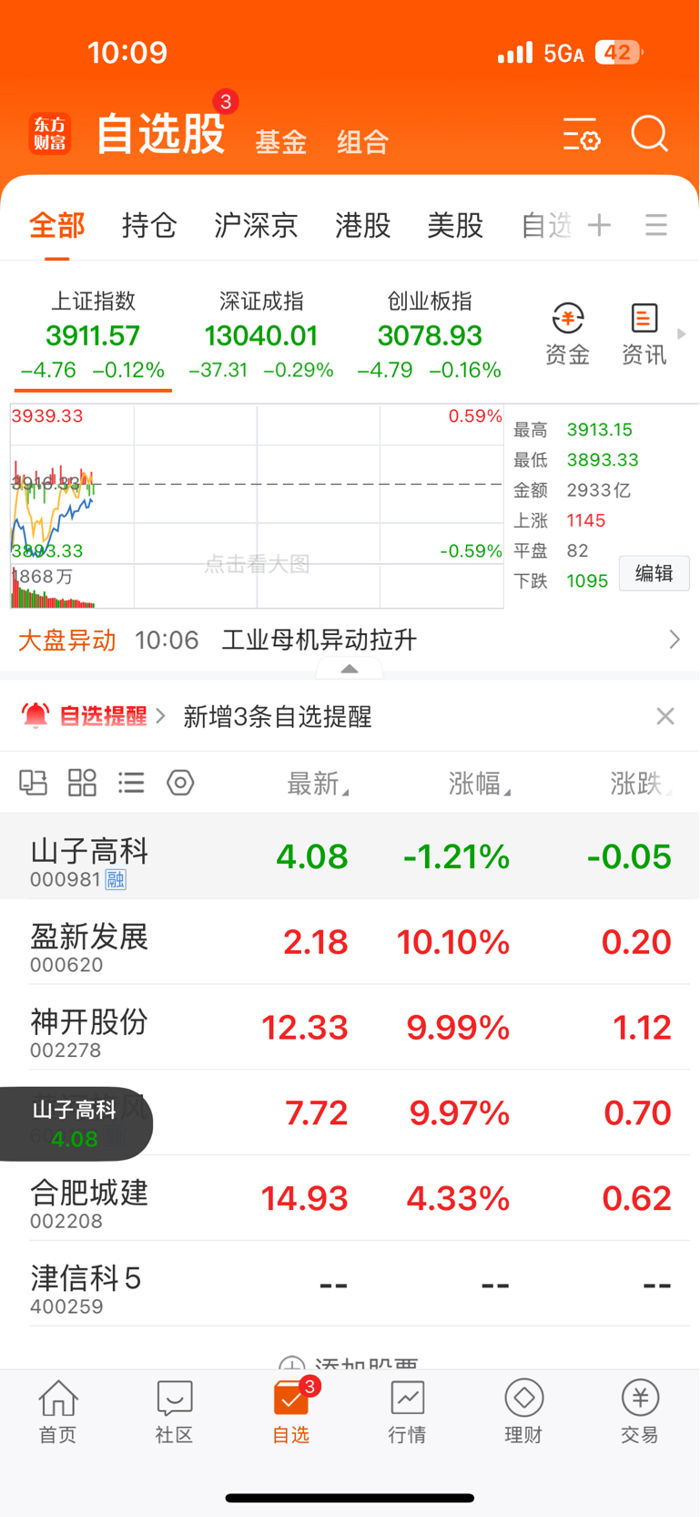 $山子高科(SZ000981)$ 为什么就你是绿的。恰恰好我只买了你一个。其他几个是前几天在犹豫