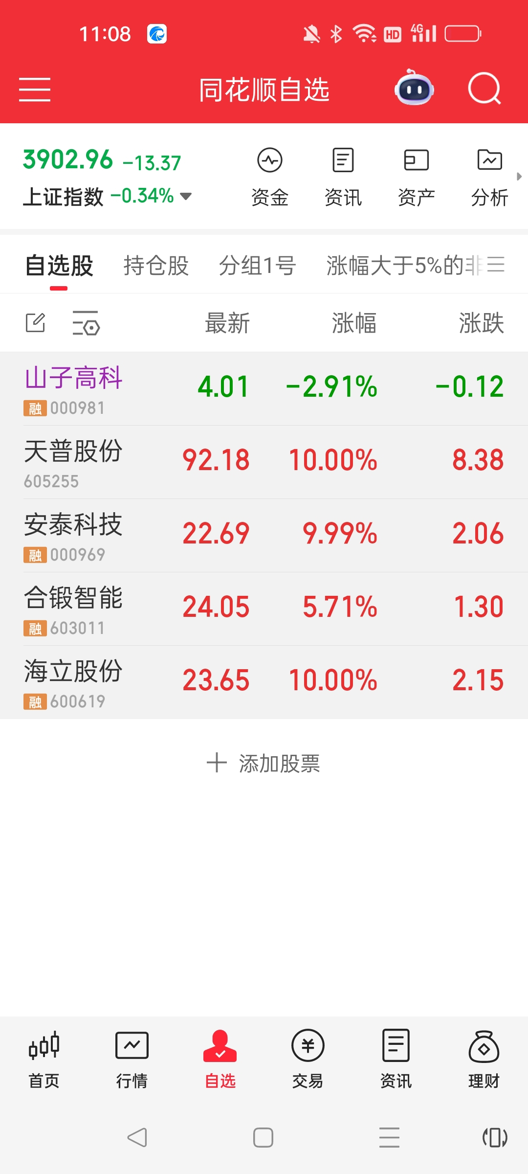 五个自选,三个涨停,一个绿的,还让我买到了,服了我了。