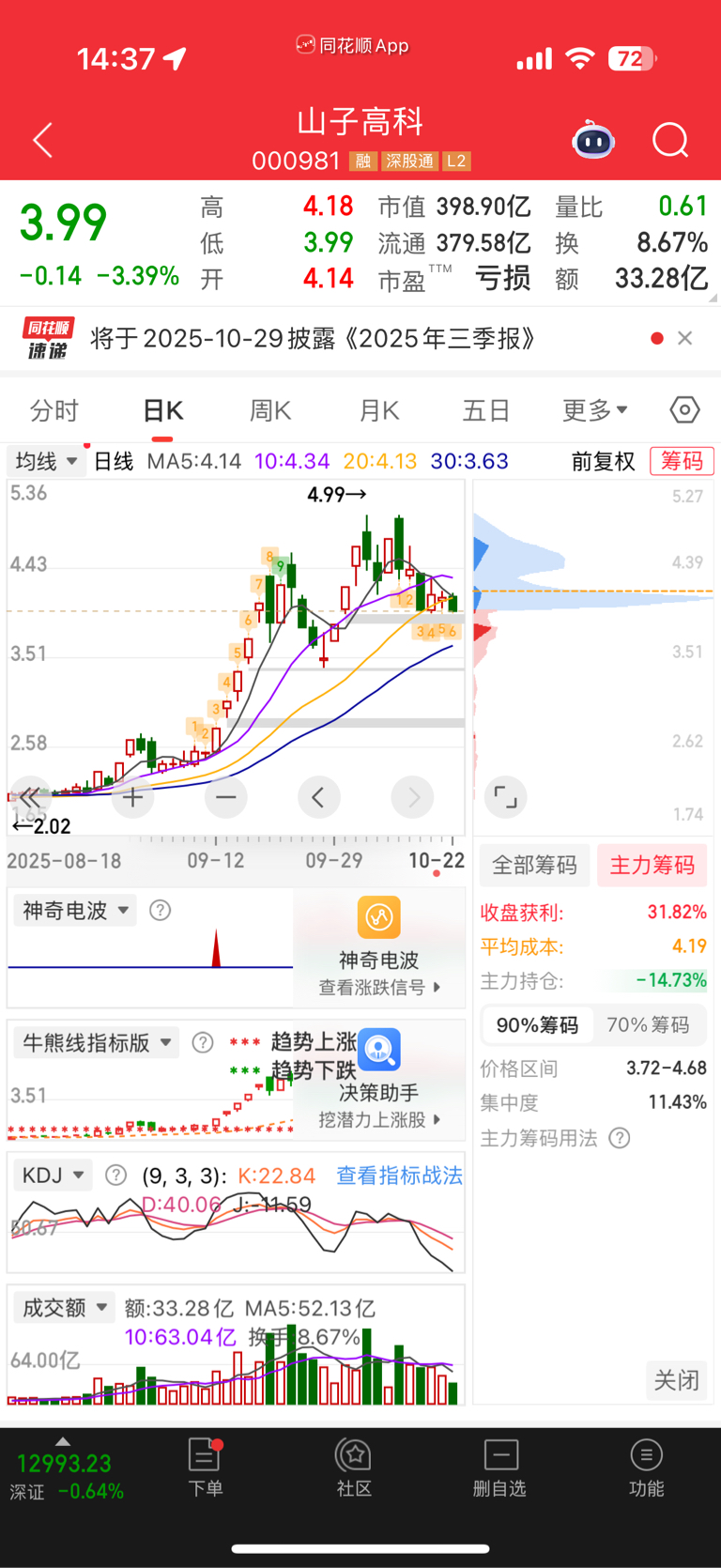 $山子高科(SZ000981)$ 主力今天又走了15%的筹码。家人们好伟大
