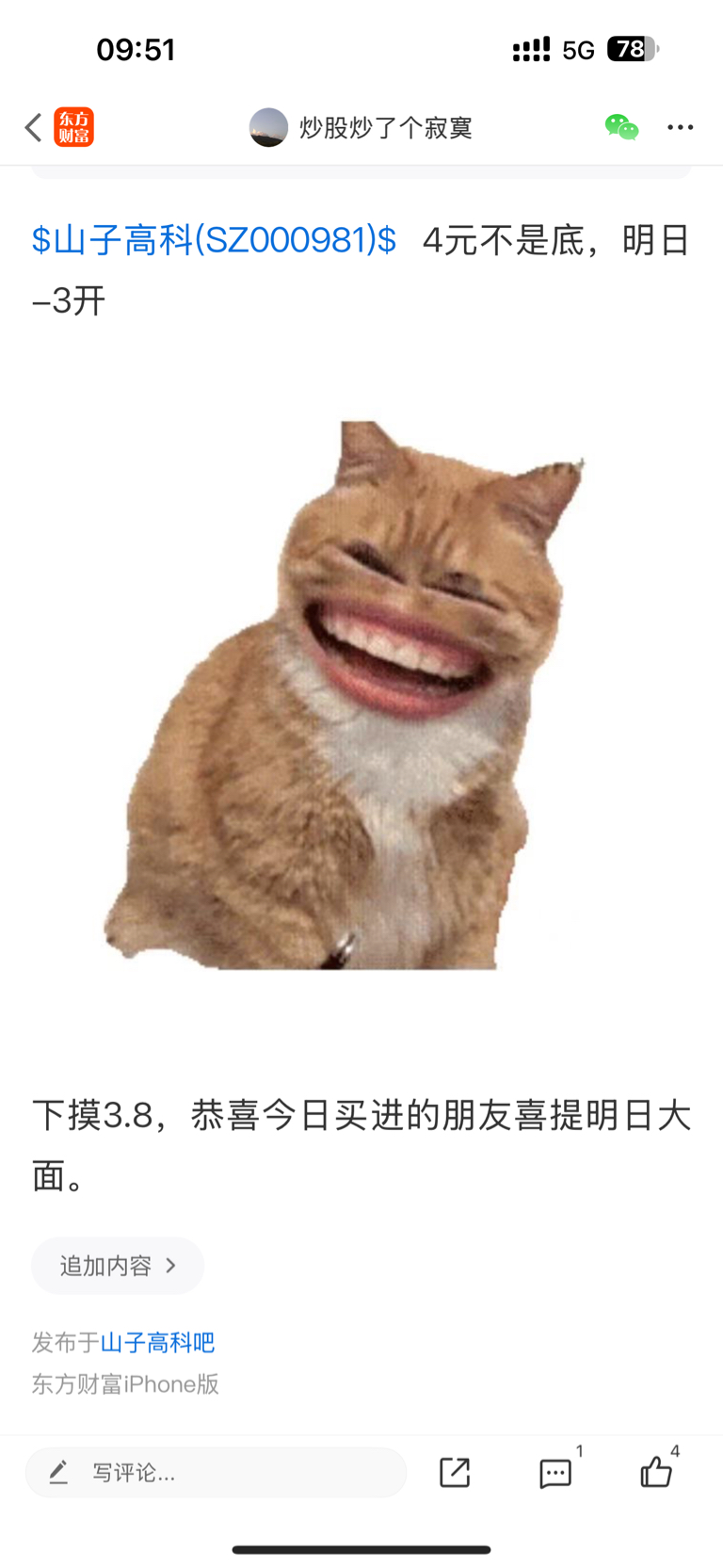 $山子高科(SZ000981)$ 昨日已经明说了 还是有那么多傻韭菜往里冲 吃面开心了吧哈哈